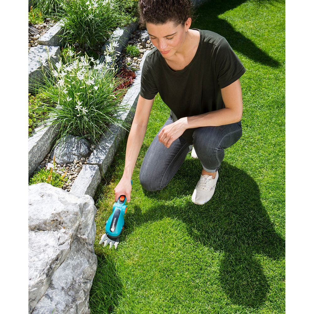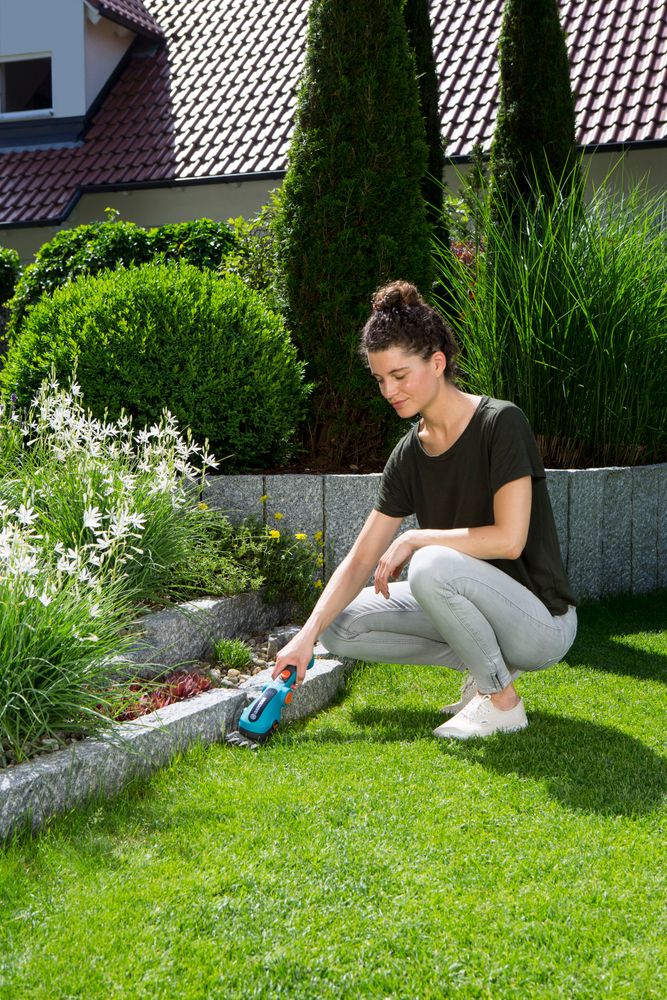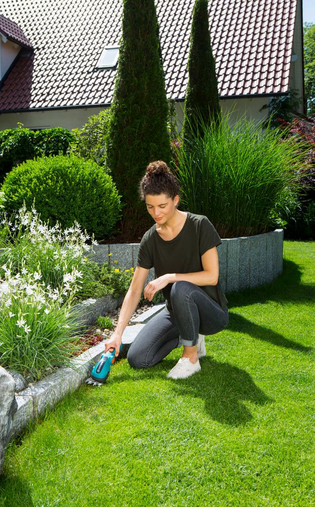 Με το Ψαλίδι Μπαταρίας Γκαζόν & Μπορντούρας ComfortCut Li της Gardena, οι άκρες του χλοοτάπητα μπορούν να κοπούν άνετα και με ακρίβεια. Τα ψαλίδια που τροφοδοτούνται με μπαταρία μπορούν να χρησιμοποιηθούν για ποικίλες εφαρμογές, καθώς διαθέτουν λεπίδα χλόης και λεπίδα μπορντουροψάλιδου. Εφαρμόζει τέλεια στο χέρι λόγω της εργονομικής λαβής του. Οι ποιοτικές λεπίδες επιτυγχάνουν άψογα αποτελέσματα κοπής και μπορούν να αφαιρεθούν και να αντικατασταθούν με το πάτημα ενός κουμπιού, χωρίς εργαλεία.