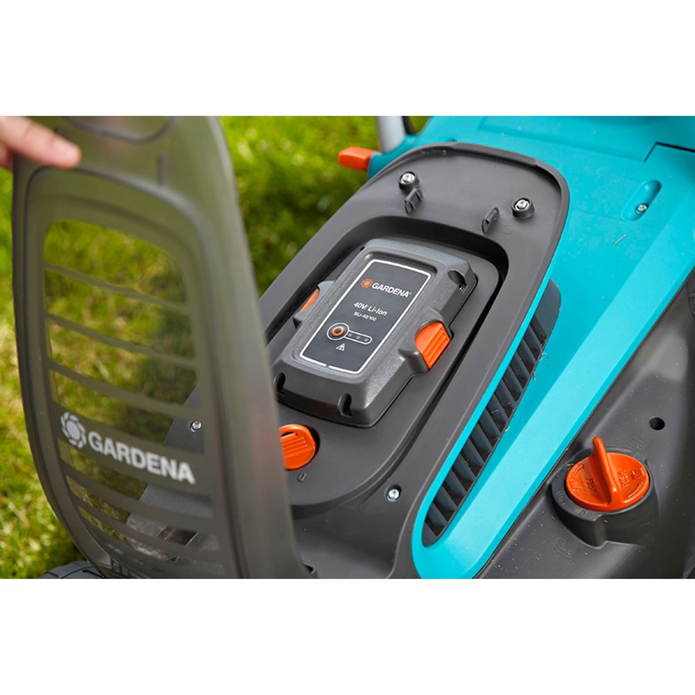 Το χλοοκοπτικό PowerMax Li-40/32 Gardena διαθέτει εργονομική λαβή ErgoTec για μεγαλύτερη άνεση κατά τη χρήση, ισχυρό κινητήρα PowerPlus χωρίς ψήκτρες και αναδιπλούμενη λαβή για εύκολη μεταφορά και αποθήκευση. Η ρύθμιση του ύψους κοπής γίνεται πολύ εύκολα και κεντρικά μέσω του διακόπτη QuickFit.