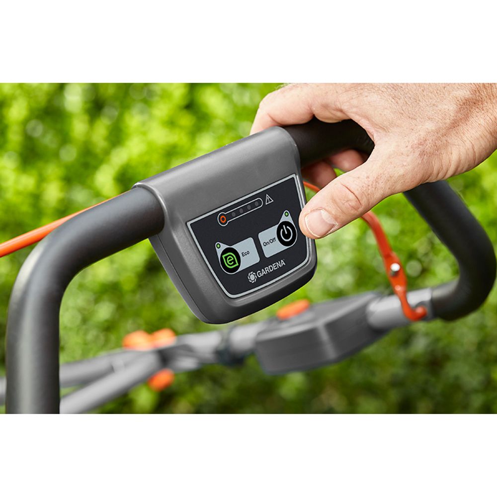 Το χλοοκοπτικό μπαταρίας Gardena PowerMax Li-40/41 (05041-20) διαθέτει διαθέτει ισχυρό κινητήρα PowerPlus χωρίς ψήκτρες και ατσάλινο πλαίσιο κοπής. Ο χειρισμός γίνεται μέσω έξυπνου πληκτρολογίου για άνετη χρήση με κουμπί επιλογής on/off, ένδειξη στάθμης μπαταρίας και λειτουργία ECO για μέγιστη αυτονομία.