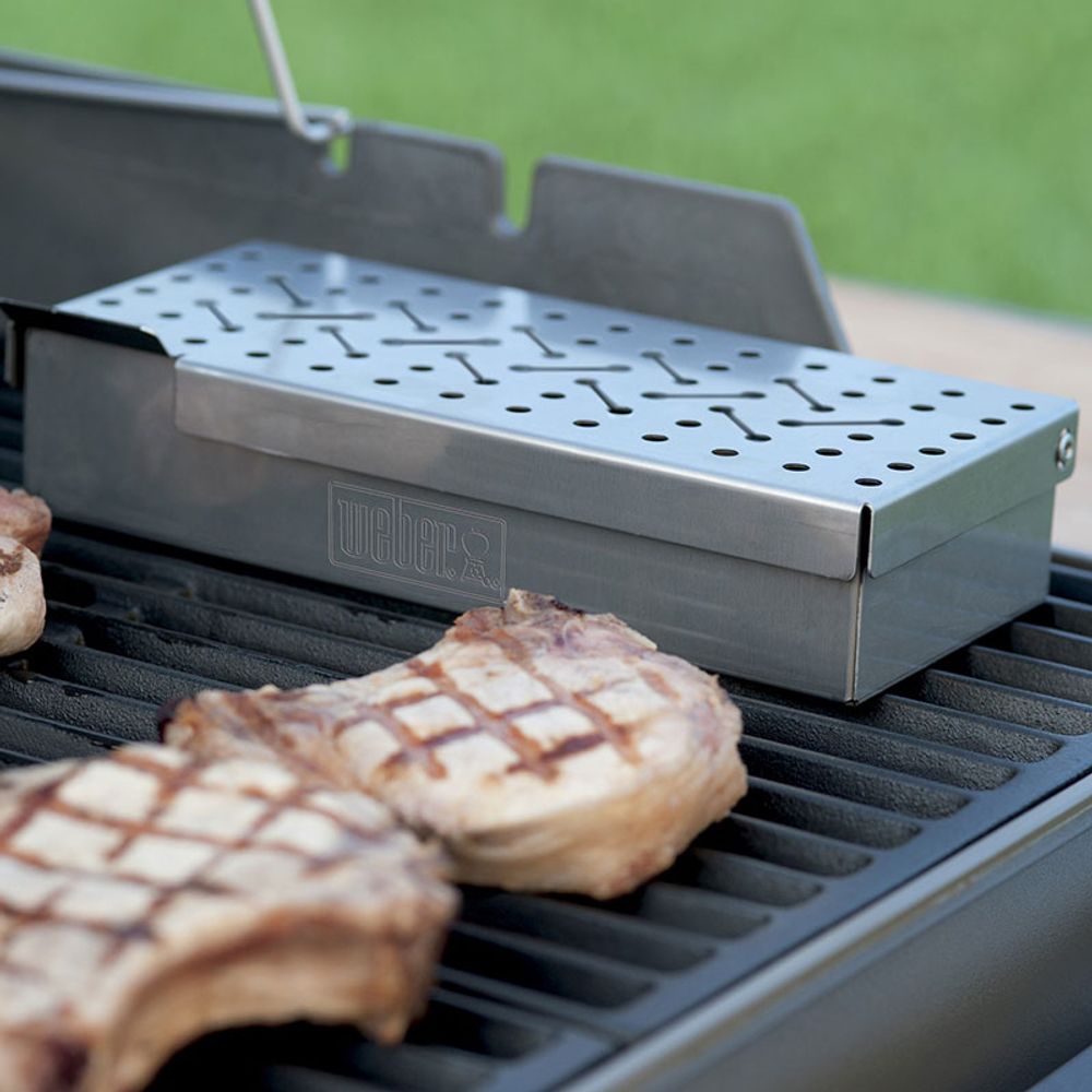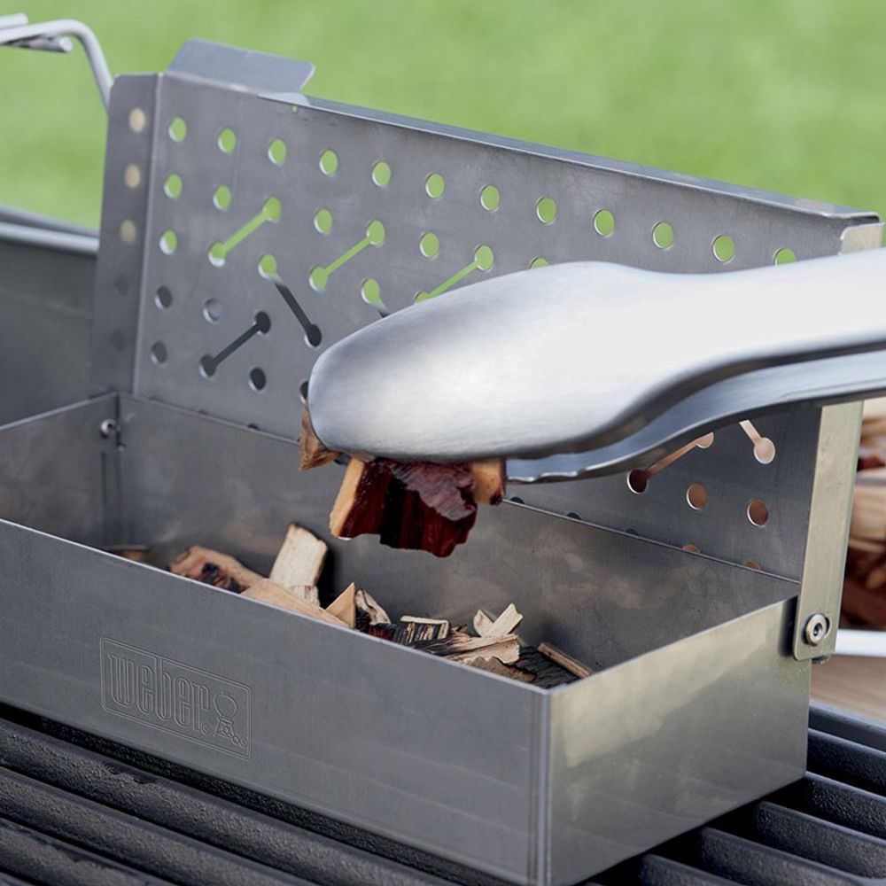 Πρόσθεσε μια λαχταριστή καπνιστή γεύση σε όλα τα ψητά γεύματα. Χάρισε στο φαγητό σου άρωμα από ξύλο καρυδιάς, μηλιάς, βελανιδιάς ή κερασιάς. Τοποθέτησε το καπνιστήρι ακριβώς πάνω από τις σχάρες μαγειρέματος και μεταμόρφωσε κάθε ψησταριά υγραερίου σε καπνιστήρι, για να χαρίσεις στα κρέατα, τα λαχανικά, τους ξηρούς καρπούς και τα τυριά τη λαχταριστή γεύση που λατρεύεις. Είναι κατάλληλο για: Ψησταριές υγραερίου Weber Q σειρές 200/2000 και μεγαλύτερες.