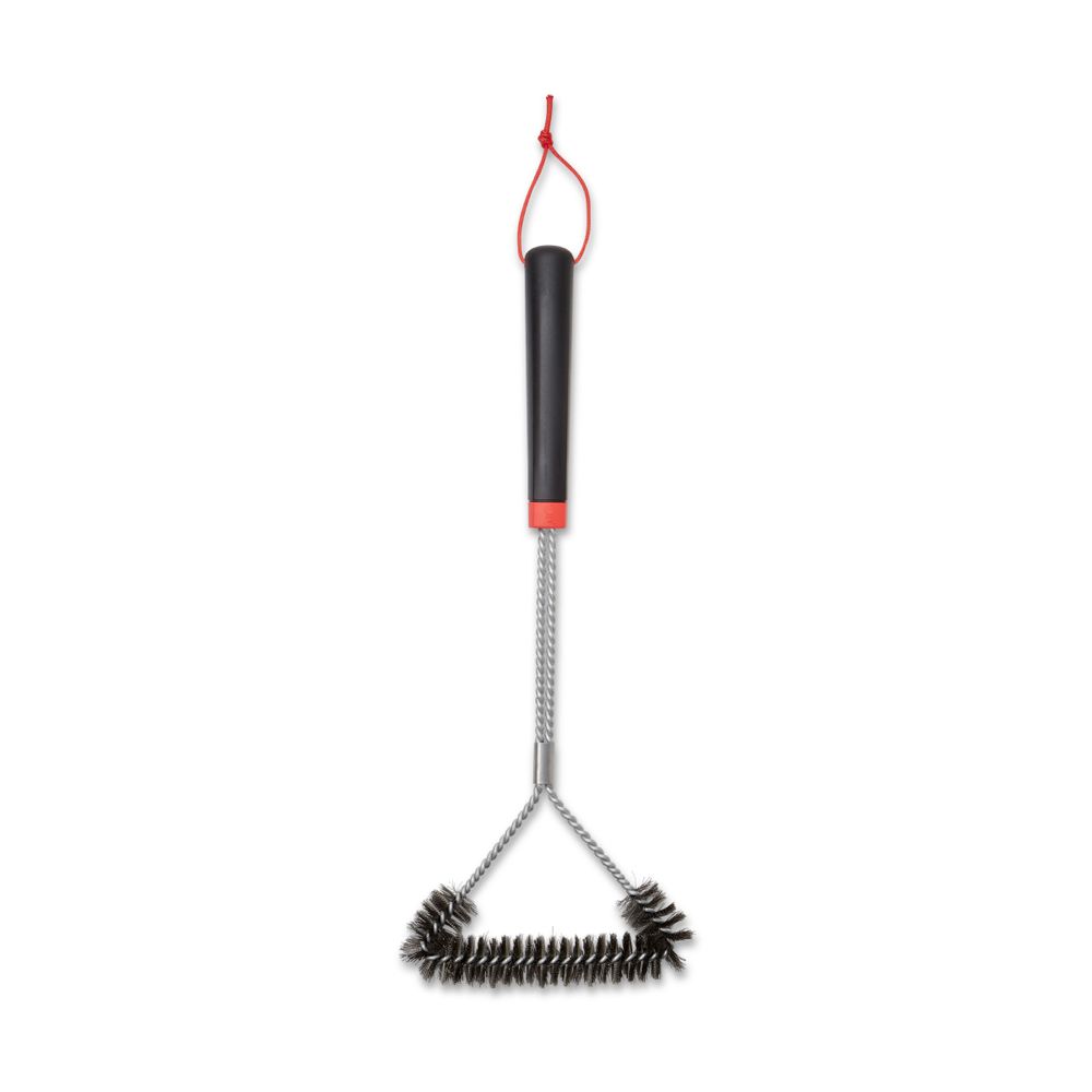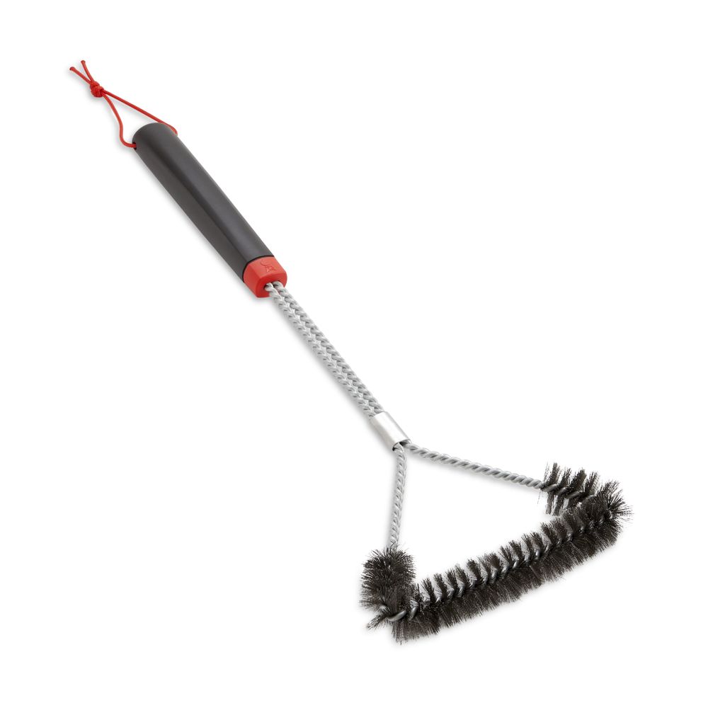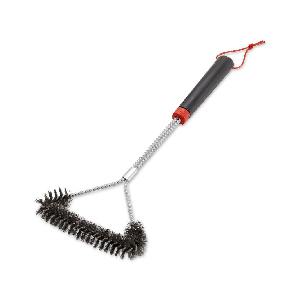 Η στρογγυλή βούρτσα 46cm και τριών όψεων της weber, είναι κατασκευασμένη για να αφαιρεί το λίπος και τα υπολείμματα φαγητού από σχάρες ψησταριάς κάθε μεγέθους. Με τρίχες από ανοξείδωτο ατσάλι που κάνουν το καθάρισμα ακόμα πιο εύκολο και κορδόνι για να μπορείς να την κρεμάσεις πάνω στην ψησταριά σου. Ο σχεδιασμός της λαβής παρέχει ασφαλή πρόσφυση κατά το βούρτσισμα των κολλημένων τροφίμων ή τον καθαρισμό στενών χώρων.