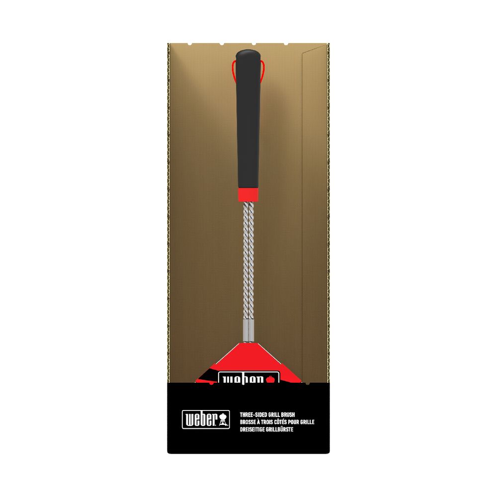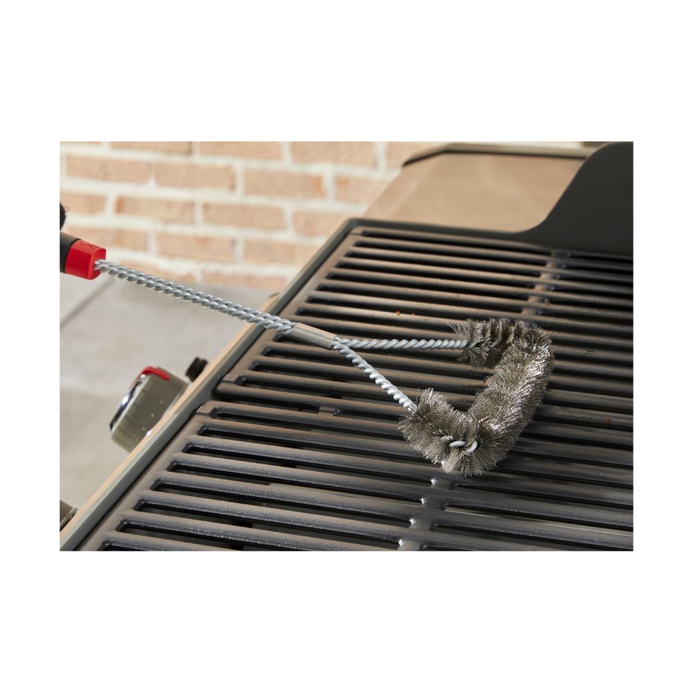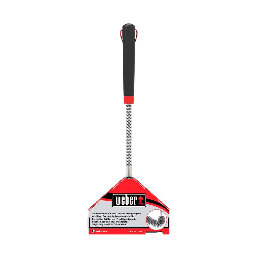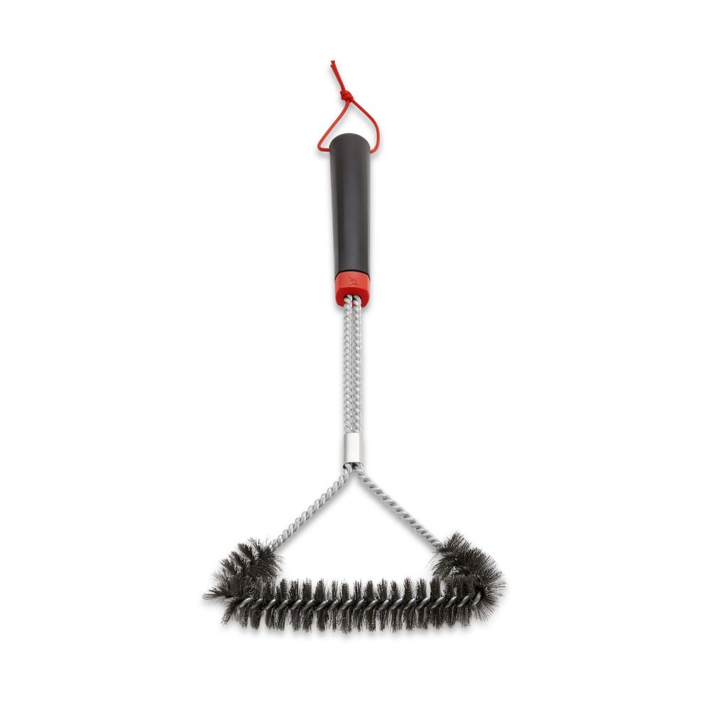 Η στρογγυλή βούρτσα 46cm και τριών όψεων της weber, είναι κατασκευασμένη για να αφαιρεί το λίπος και τα υπολείμματα φαγητού από σχάρες ψησταριάς κάθε μεγέθους. Με τρίχες από ανοξείδωτο ατσάλι που κάνουν το καθάρισμα ακόμα πιο εύκολο και κορδόνι για να μπορείς να την κρεμάσεις πάνω στην ψησταριά σου. Ο σχεδιασμός της λαβής παρέχει ασφαλή πρόσφυση κατά το βούρτσισμα των κολλημένων τροφίμων ή τον καθαρισμό στενών χώρων.