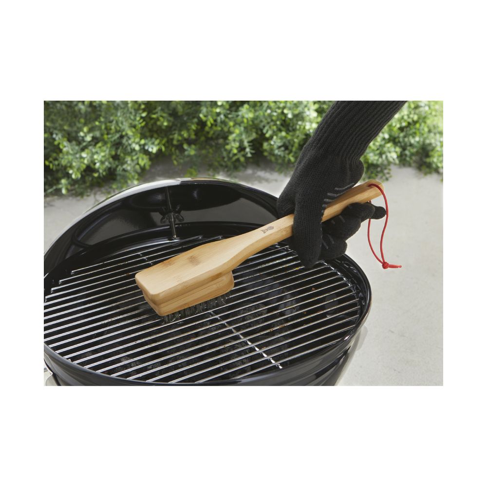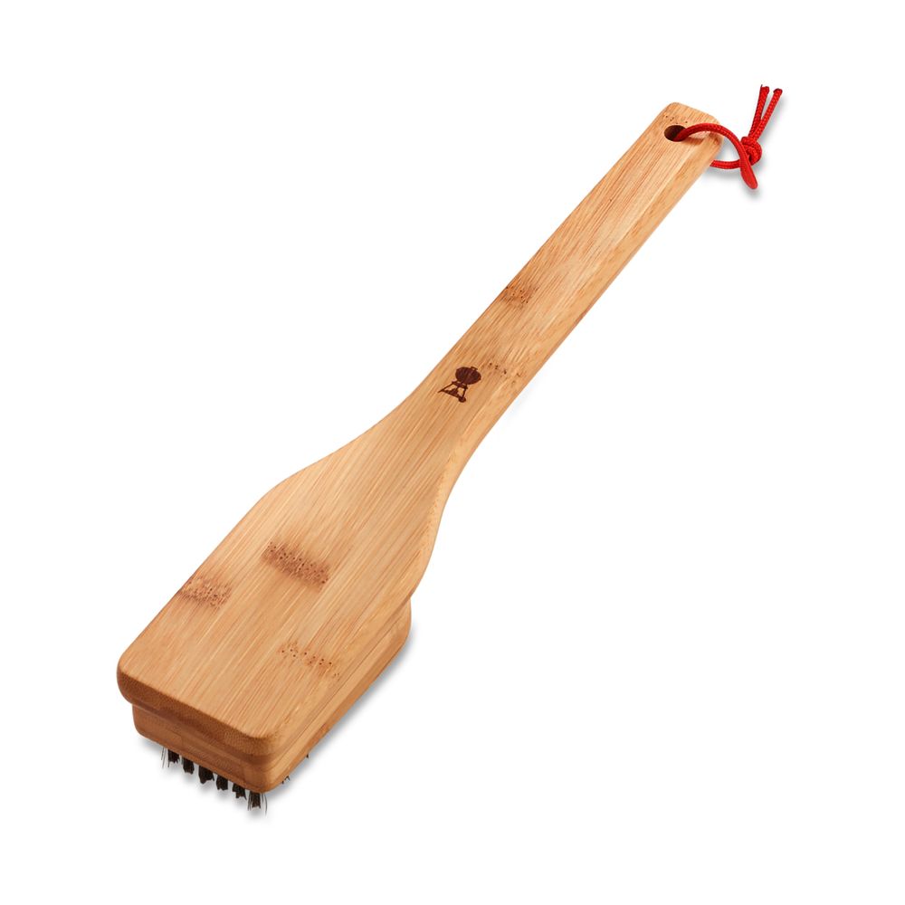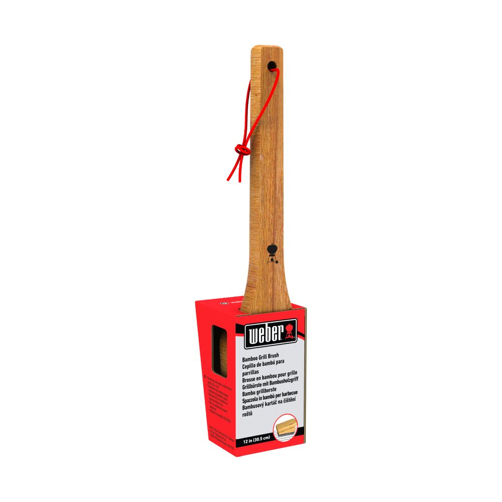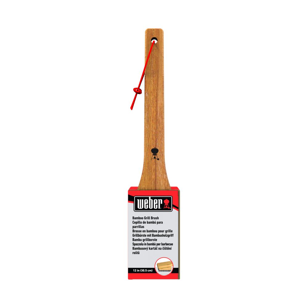 Η ξύλινη βούρτσα καθαρισμού από μπαμπού της Weber κάνει το καθάρισμα της σχάρας της ψησταριάς σου ευκολότερο καθώς διαθέτει τρίχες από ατσάλι που απομακρύνουν τα καμμένα λίπη και τα υπολείμματα φαγητού στη στιγμή! Με μήκος 30cm και κορδόνι για να μπορείς να την κρεμάς κατά την αποθήκευση! Κατάλληλη για ψησταριές κάρβουνου.