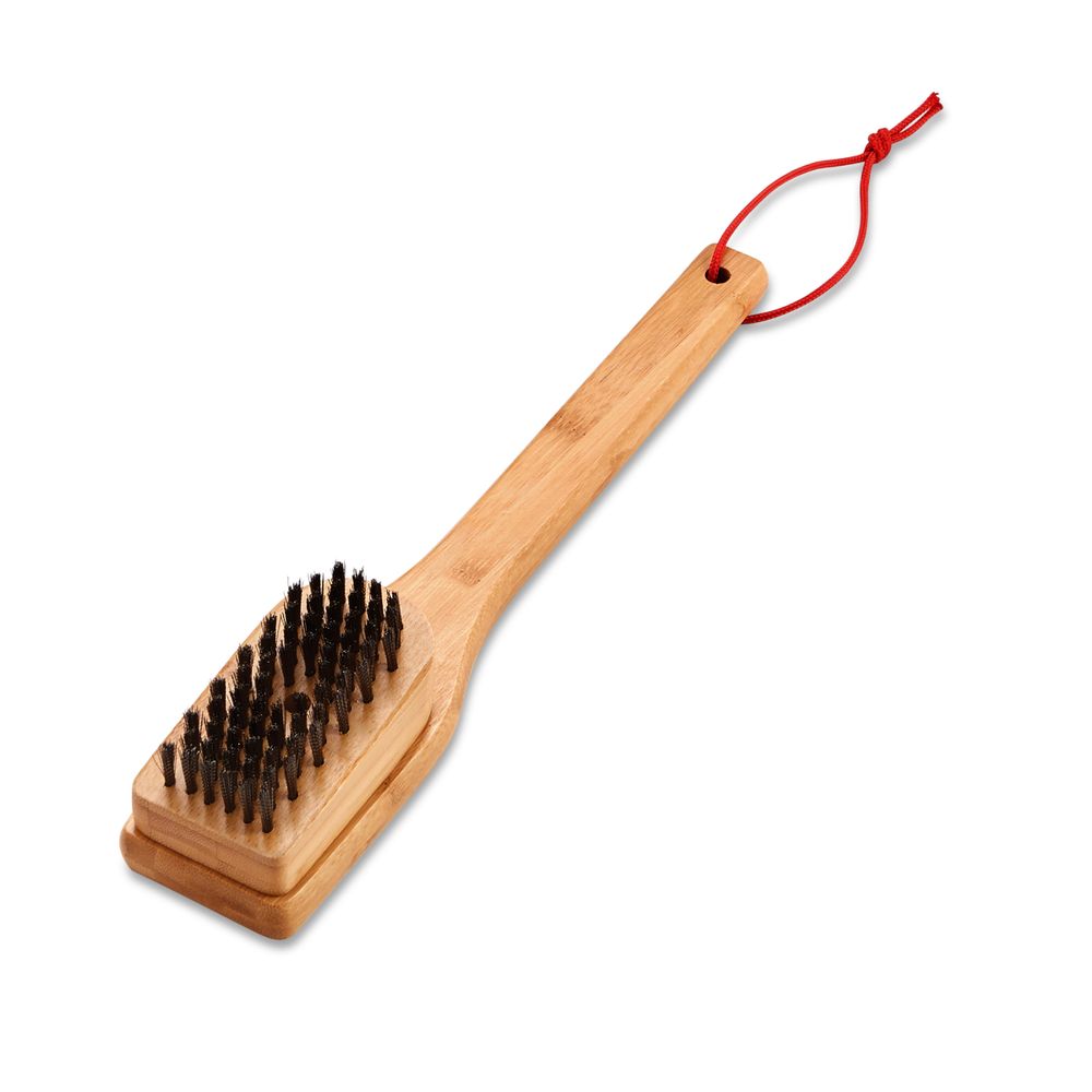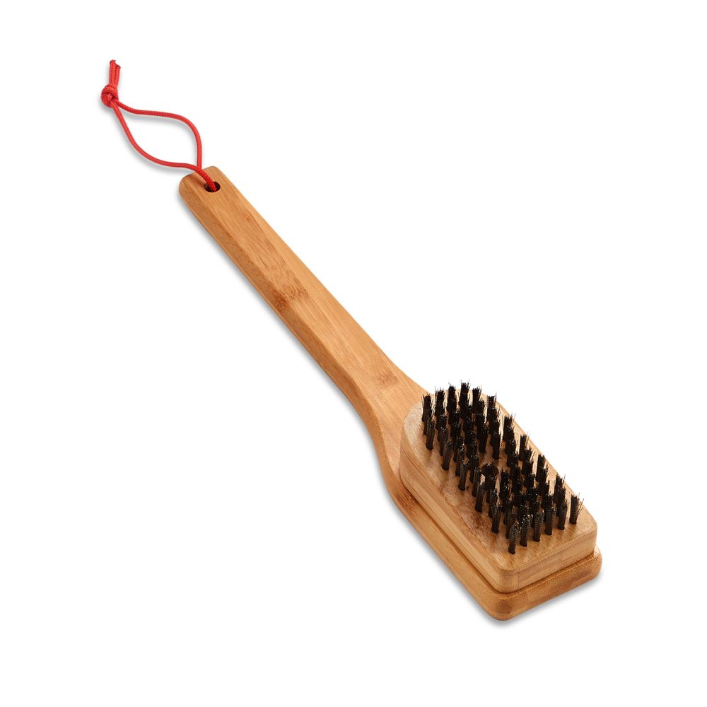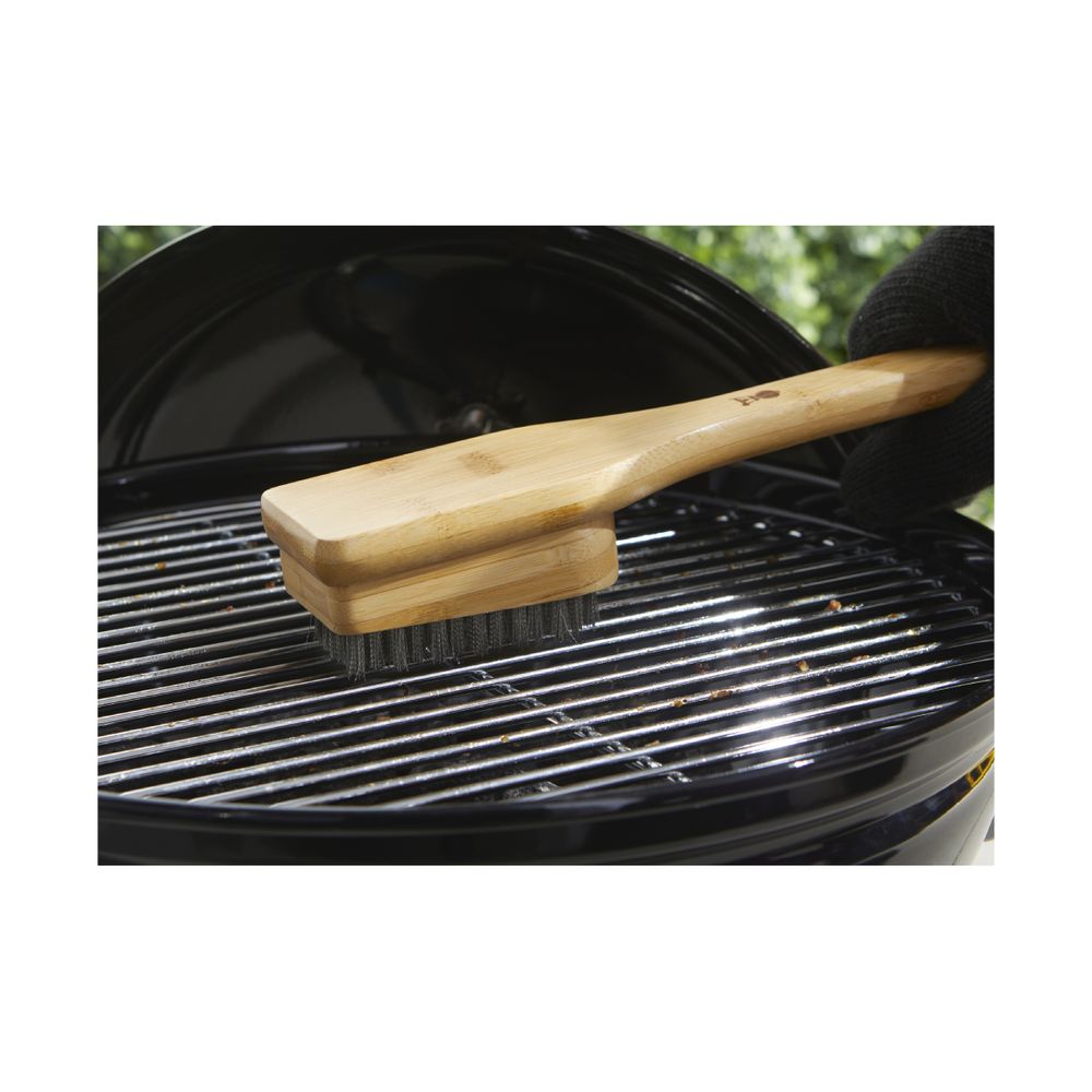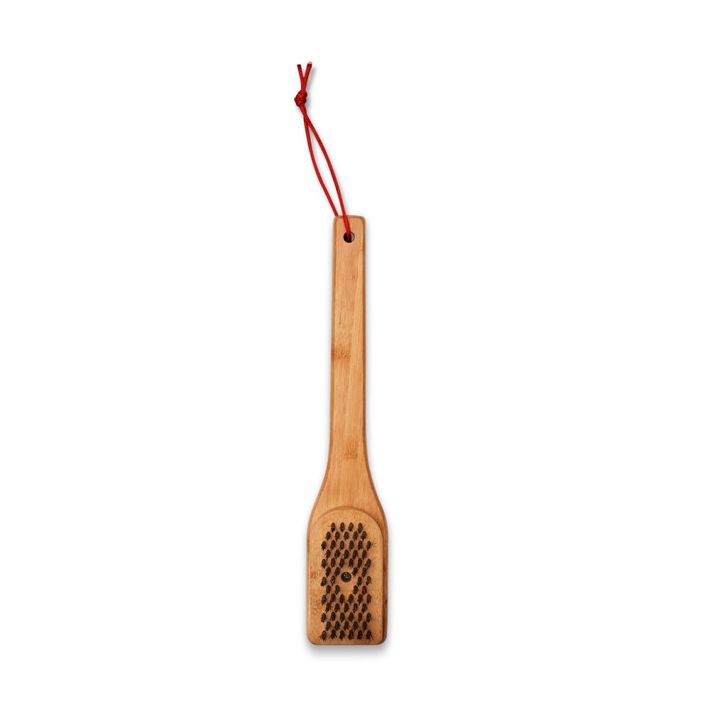 Η ξύλινη βούρτσα καθαρισμού από μπαμπού της Weber κάνει το καθάρισμα της σχάρας της ψησταριάς σου ευκολότερο καθώς διαθέτει τρίχες από ατσάλι που απομακρύνουν τα καμμένα λίπη και τα υπολείμματα φαγητού στη στιγμή! Με μήκος 30cm και κορδόνι για να μπορείς να την κρεμάς κατά την αποθήκευση! Κατάλληλη για ψησταριές κάρβουνου.