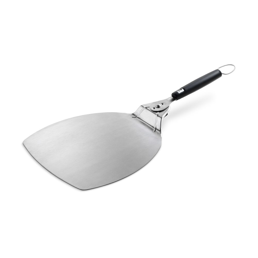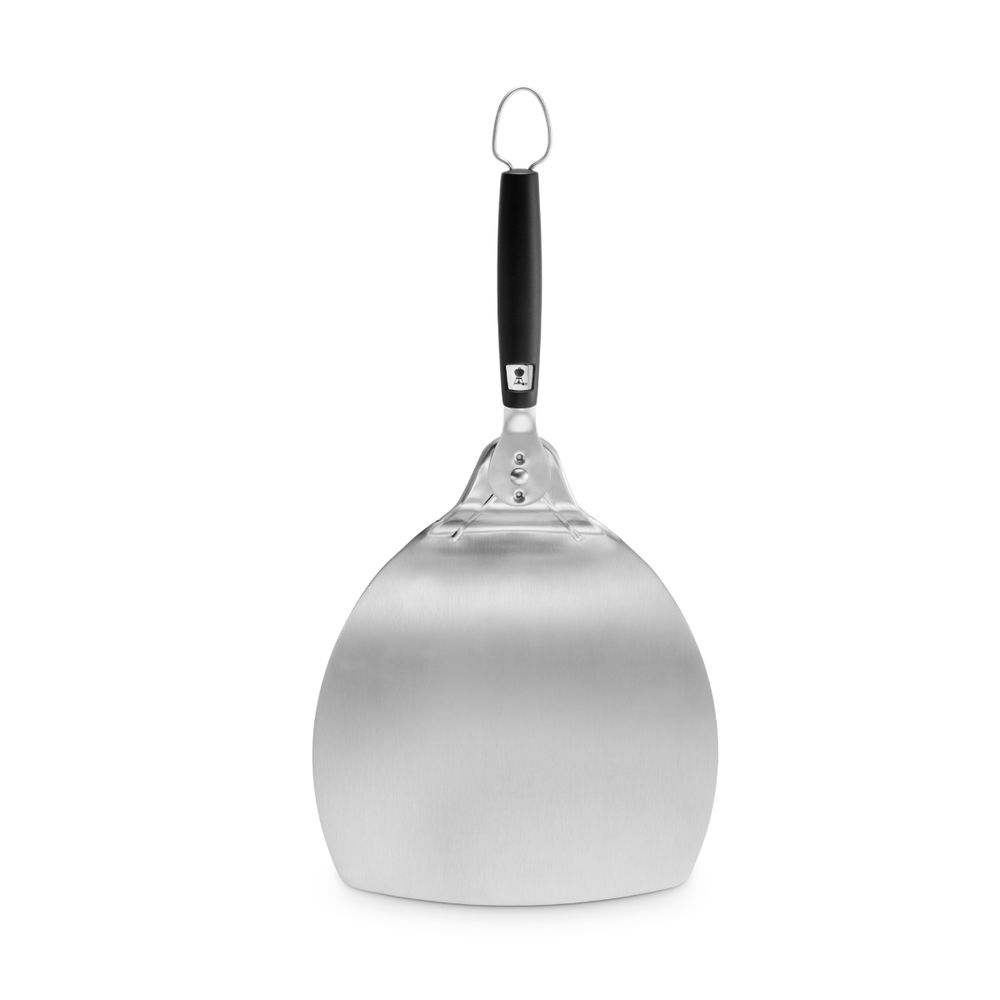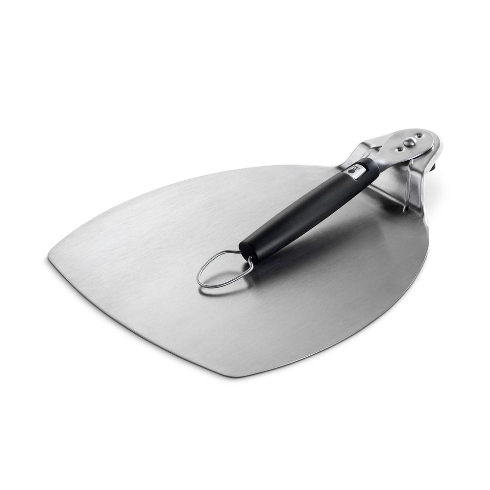 Ανοξείδωτη σπάτουλα πίτσας, κατασκευασμένη για να ανασηκώνει, να μεταφέρει και να τοποθετεί εύκολα τη ζύμη σου πάνω στην πέτρινη βάση πίτσας, στις σχάρες μαγειρέματος ή στο τραπέζι, όταν η πίτσα είναι έτοιμη για σερβίρισμα. Με λαβή που περιστρέφεται για να καταλαμβάνει λιγότερο χώρο κατά την αποθήκευση. Πλένεται στο πλυντήριο πιάτων.