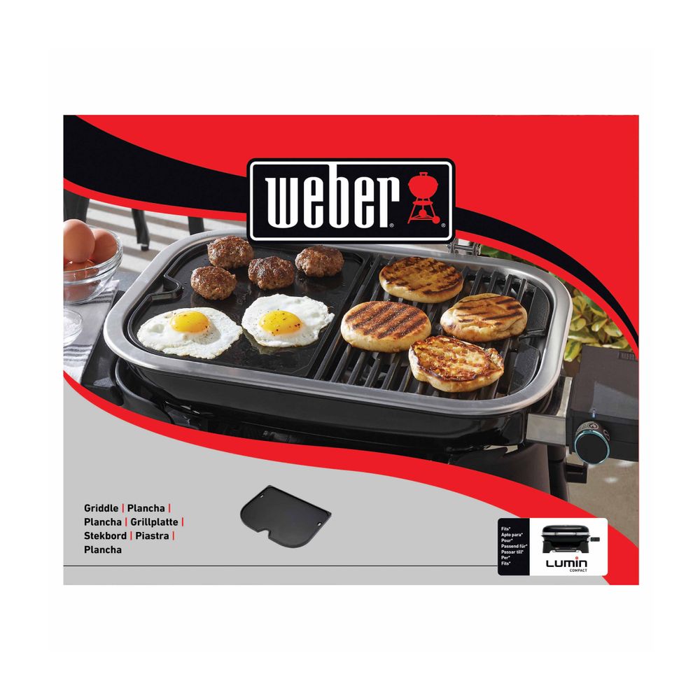 Μαγειρεύεις τα πάντα στην ηλεκτρική ψησταριά σου Weber Lumin Compact, από τηγανίτες και αυγά μέχρι λαχανικά και ψάρια με την μαντεμένια πλάκα με εμαγιέ πορσελάνινη επίστρωση, για ομοιόμορφη κατανομή θερμότητας και εύκολο καθαρισμό. Κρατήσε το φαγητό σου στη θέση του χάρη στα υπερυψωμένα άκρα. Σχεδιασμένη για να αντικαθιστά τη σχάρα ψησίματος στην ηλεκτρική ψησταριά Lumin Compact.