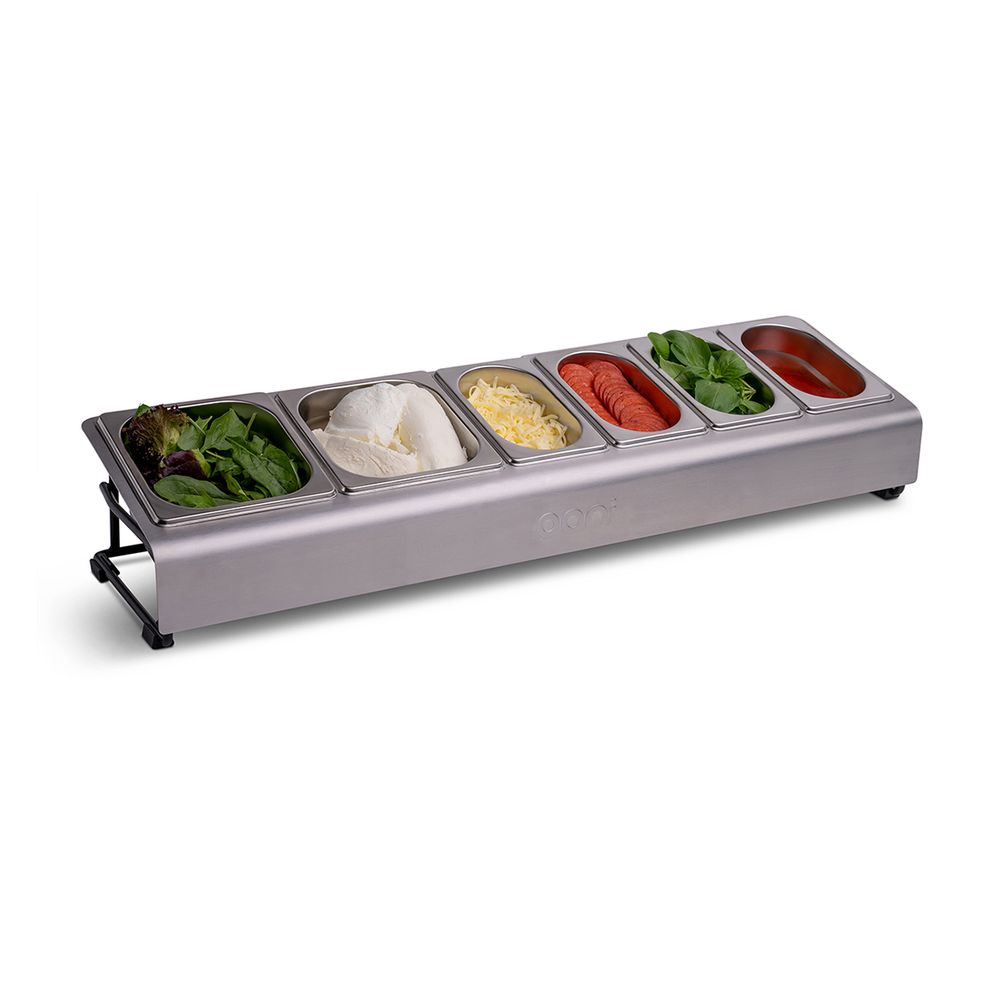 Το μαγείρεμά σου θα γίνει παιχνίδι με το Topping Station της Ooni. Με 4 ταψάκια γαστρονόμους χωρητικότητας 0,8 lt, το καθένα και 2 μεγαλύτερα, διπλάσιας χωρητικότητας, θα φιλοξενήσει όλα όσα χρειάζεσαι για ένα αξέχαστο pizza party με την παρέα σου. Από τη μοτσαρέλα, το πεπερόνε και τα μυρωδάτα φύλλα βασιλικού, μέχρι τη φρέσκια σάλτσα ντομάτας, οι γαστρονόμοι του Ooni Topping Station, θα οργανώσουν τα υλικά σου, για να απολαύσεις μια μαγειρική εμπειρία χωρίς άγχος.