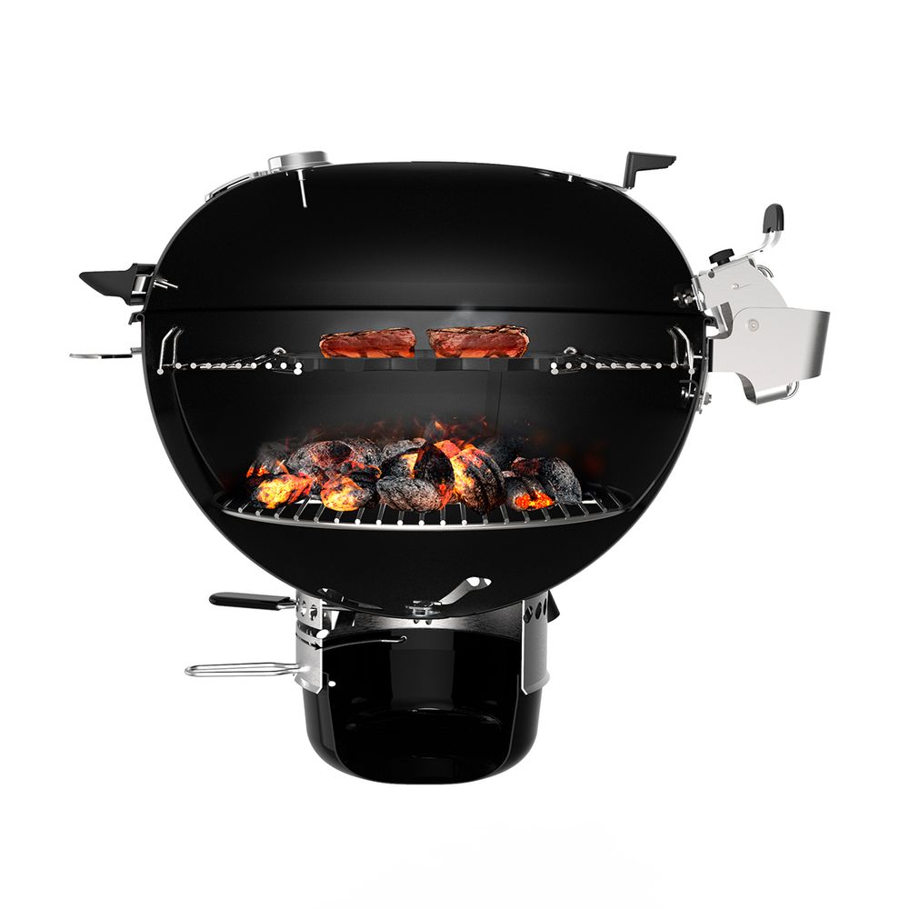 Η Master-Touch Premium, 3-σε-1 ψησταριά κάρβουνου, καπνίζει, ροδίζει και ψήνει τα πάντα, από μπριζόλες, ζουμερό pulled χοιρινό, ακόμα και γλυκά, με το σύστημα Gourmet BBQ System. Με νέα χαρακτηριστικά όπως ένα εύχρηστο αρθρωτό καπάκι και δακτύλιο κάρβουνων/πλάκα διάχυσης για αποτελεσματική κατανάλωση καυσίμου, η Master-Touch Premium είναι η λύση για το καθημερινό μπάρμπεκιου.