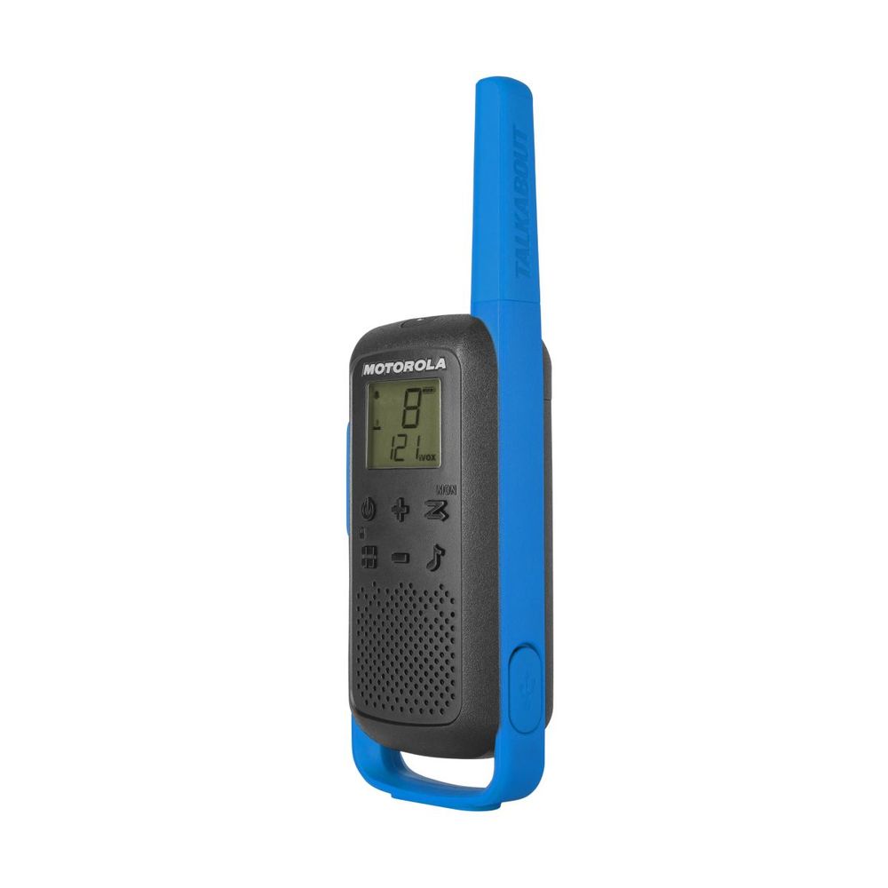 Το Walkie-Talkie T62 είναι συμπαγές, ελαφρύ και εύκολο στη μεταφορά. Διαθέτει κουμπί εύκολης αντιστοίχισης, φόρτιση μέσω USB, οθόνη οπίσθιου φωτισμού και αυτονομία έως 18 ώρες. Λειτουργεί με επαναφορτιζόμενες μπαταρίες NiMH ή 3 μπαταρίες AA. Με 16 κανάλια, 121 κωδικούς απορρήτου και εμβέλεια έως 8 χιλιόμετρα, είναι η ιδανική λύση για συνεχή σύνδεση.