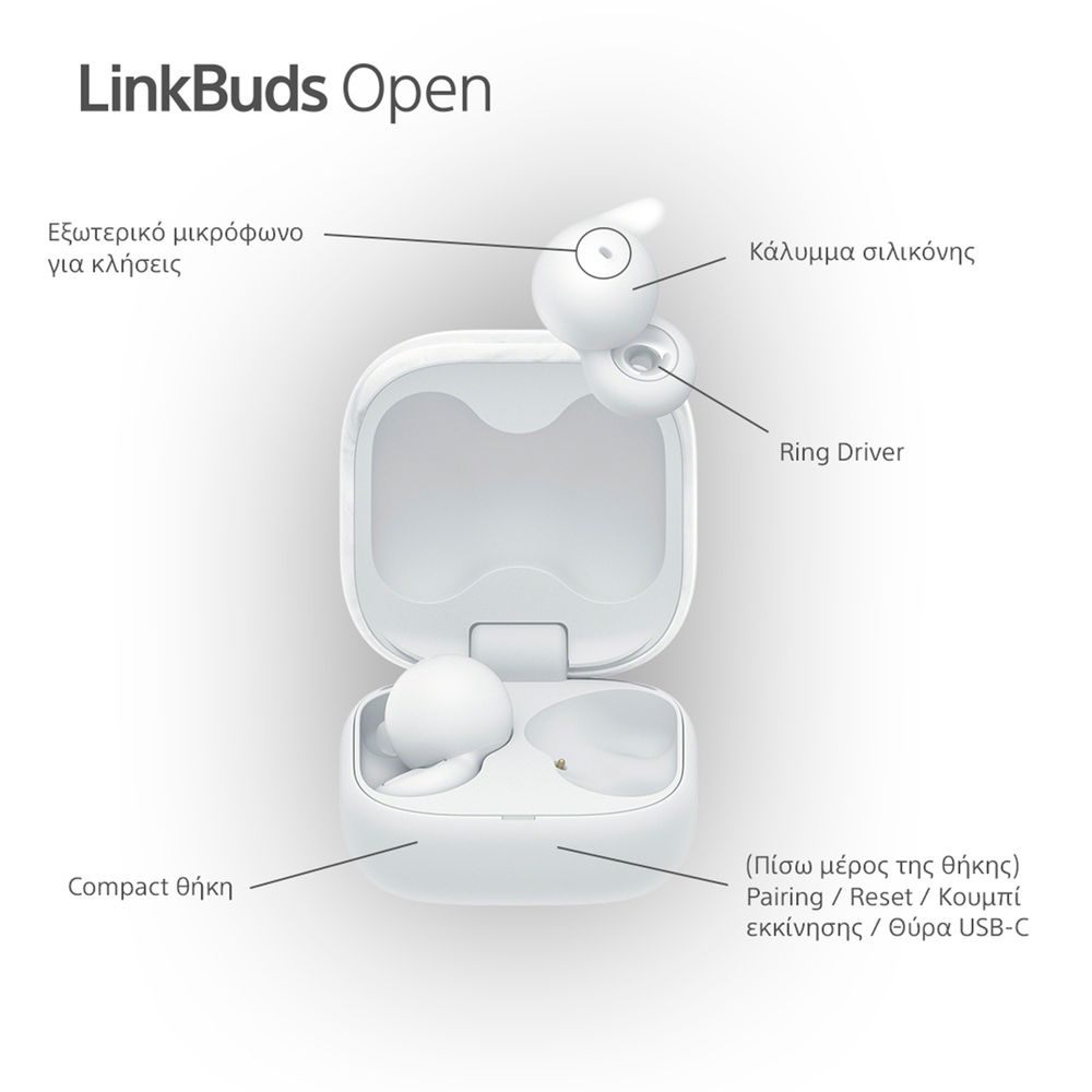 Η Sony παρουσιάζει τα LinkBuds Open: Με καινοτόμο οδηγό δακτυλίου, μπορείς να ακούς το περιβάλλον σου ενώ απολαμβάνεις μουσική ή podcasts. Ο εργονομικός σχεδιασμός και το air cushion προσφέρουν άνεση και σταθερότητα. Ζυγίζουν μόλις 4,8 g, ιδανικά για ολοήμερη χρήση και σπορ. Ο οδηγός 11 mm παρέχει ισορροπημένο ήχο, ενώ το DSEE αποκαθιστά τις χαμένες συχνότητες. Προσφέρουν 22 ώρες αναπαραγωγής, γρήγορη φόρτιση, multipoint συνδεσιμότητα και ανακυκλωμένα υλικά χωρίς πλαστικό στη συσκευασία.