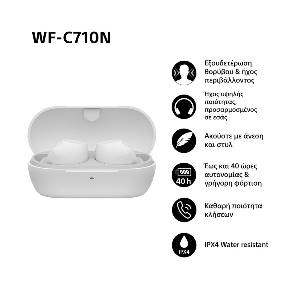 Τα ασύρματα ακουστικά WF-C710N σου προσφέρουν εξαιρετική εξουδετέρωση θορύβου, μεγαλύτερη διάρκεια μπαταρίας και ασυμβίβαστη ποιότητα ήχου. Είναι ιδανικά για κάθε περίσταση, προσφέροντάς σου την απόλυτη εμπειρία ακρόασης με άνεση και ευελιξία. Δοκίμασέ τα και απόλαυσε την αγαπημένη σου μουσική χωρίς περισπασμούς.