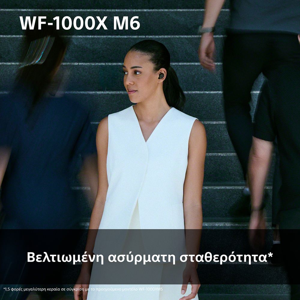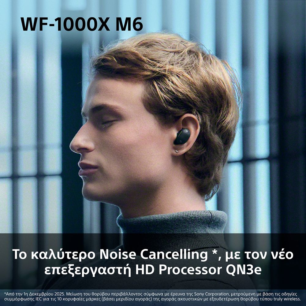 Ανακάλυψε τα ασύρματα ακουστικά earbuds Sony WF-1000XM6 με την καλύτερη εξουδετέρωση θορύβου μέχρι σήμερα. Με νέο επεξεργαστή, 8 μικρόφωνα και Adaptive NC Optimizer. Ρυθμισμένα από βραβευμένους με Grammy μηχανικούς και με Hi-Res Wireless, προσφέρουν πλούσιο, καθαρό ήχο. Άνετη και ασφαλής εφαρμογή, με την καλύτερη ποιότητα κλήσεων της Sony σε earbuds, σταθερή συνδεσιμότητα, hands-free Google Assistant/Gemini και πλήρης παραμετροποίηση μέσω της εφαρμογής Sony | Sound Connect σε iOS/Android.