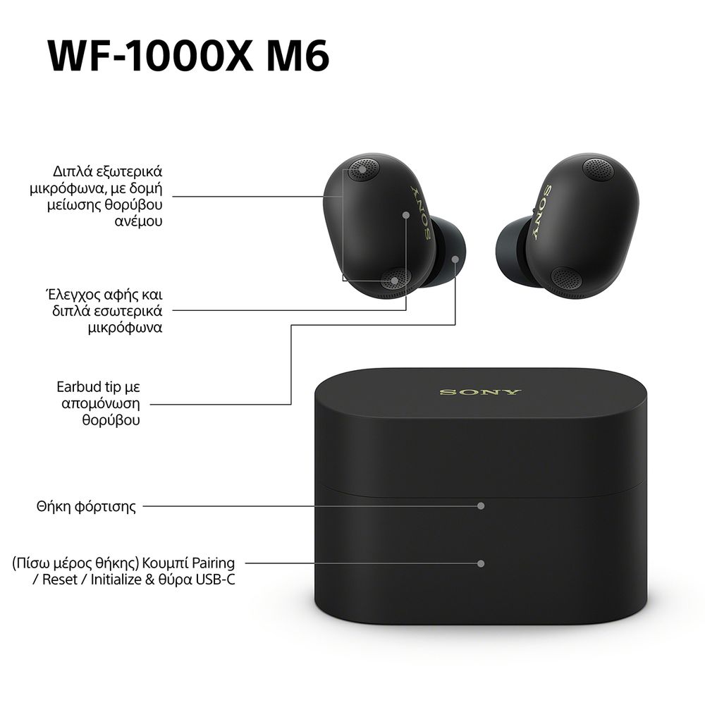 Sony WF-1000XM6 Wireless Noise Cancelling Earbuds - Black Ακουστικά Earbuds