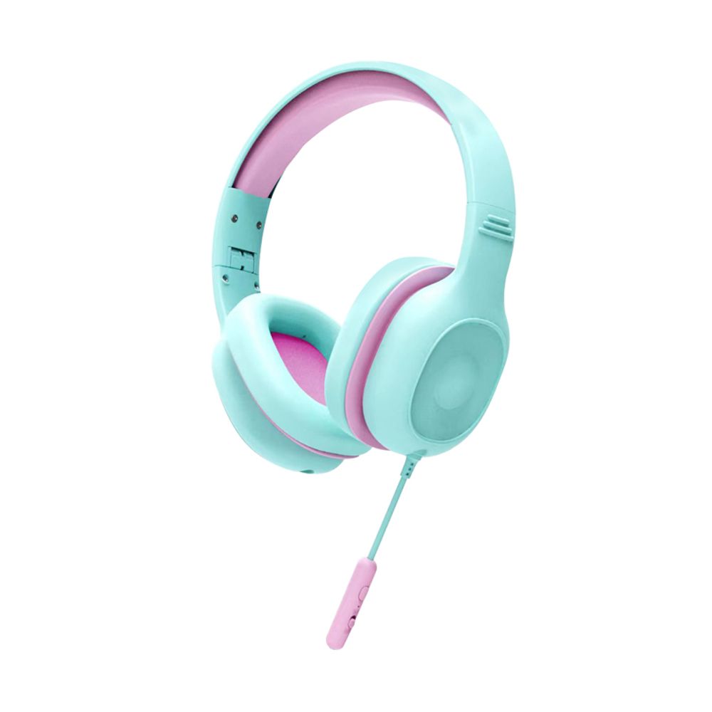 Παιδικά ενσύρματα ακουστικά Kiddoboo, με υψηλής ποιότητας μικρόφωνο, και κουμπί επιλογής περιορισμού έντασης στα 85/94db για προστασία των αυτιών.Διαθέτει μαλακά και άνετα μαξιλαράκια από PU δέρμα, υποδοχή για σύνδεση δεύτερου ακουστικού και αναδιπλούμενα ακουστικά.
