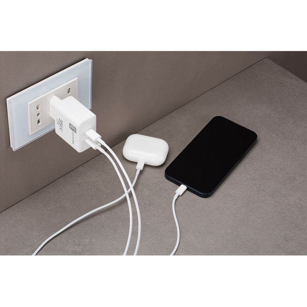 Φορτιστής 35W από την Cellular Line, που φορτίζει έως και 2 συσκευές Apple. Όταν οι θύρες χρησιμοποιούνται ταυτόχρονα, ο φορτιστής αναγνωρίζει τις συνδεδεμένες συσκευές και βελτιστοποιεί την απόδοση φόρτισης και για τις δύο συσκευές. Με κύκλωμα προστασίας υπερφόρτωσης και βραχυκυκλώματος.\nΌταν οι θύρες χρησιμοποιούνται ταυτόχρονα, ο φορτιστής αναγνωρίζει τις συνδεδεμένες συσκευές και βελτιστοποιεί την απόδοση φόρτισης και για τις δύο συσκευές.