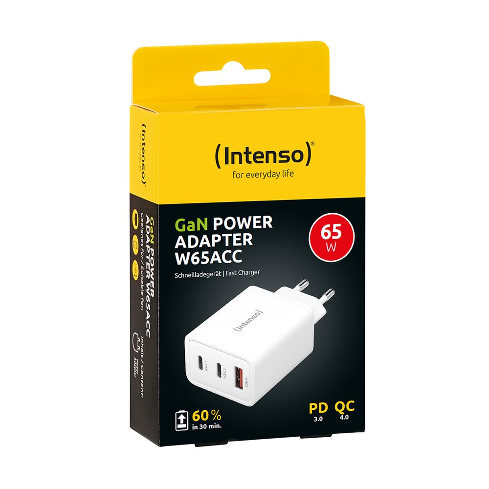 Intenso Adaptor 1xUSBA & 2xUSBC GAN W65ACC Φορτιστής