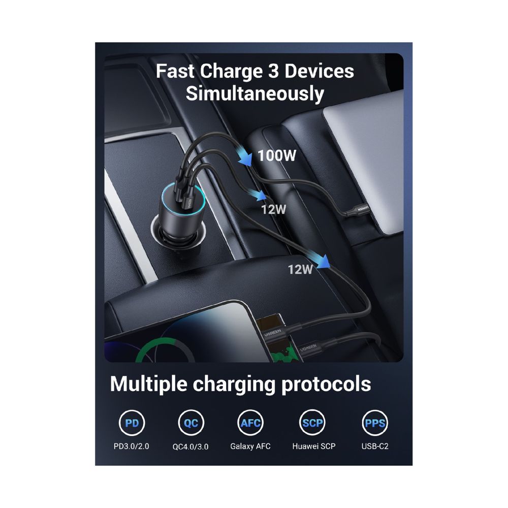 Ugreen 130W 3-Port Φορτιστής Αυτοκινήτου