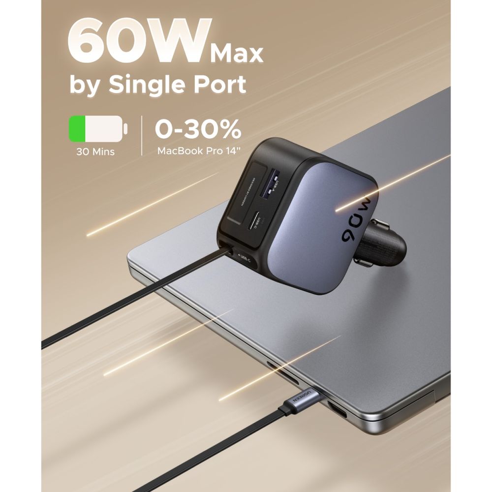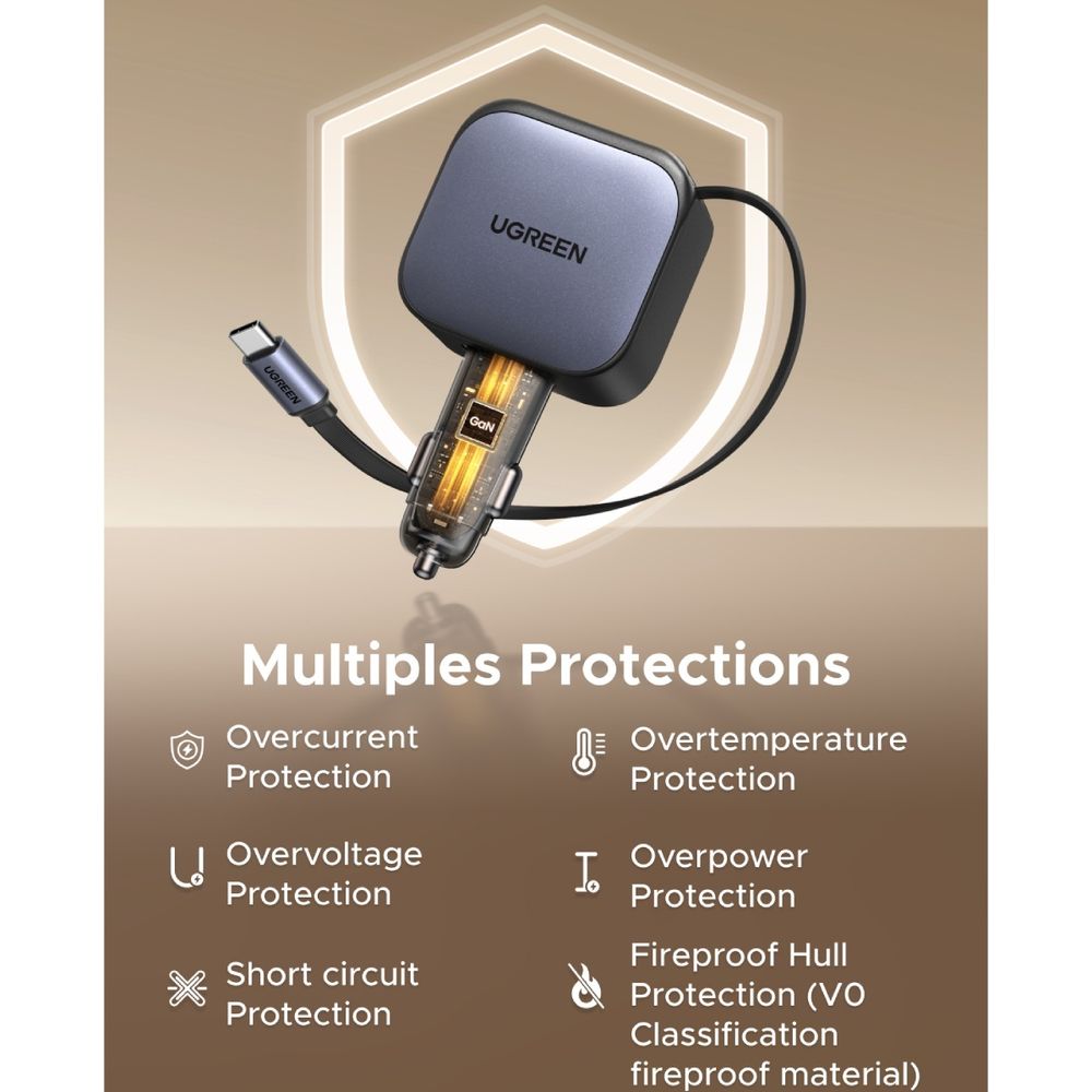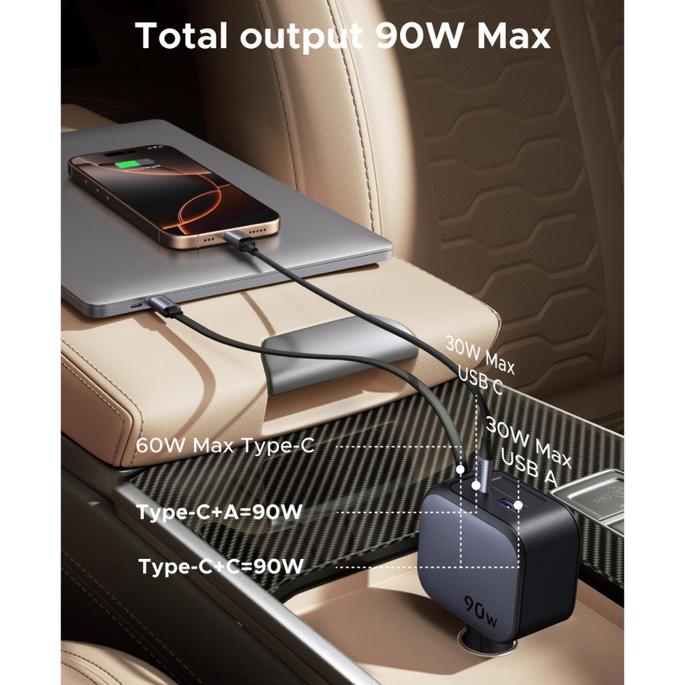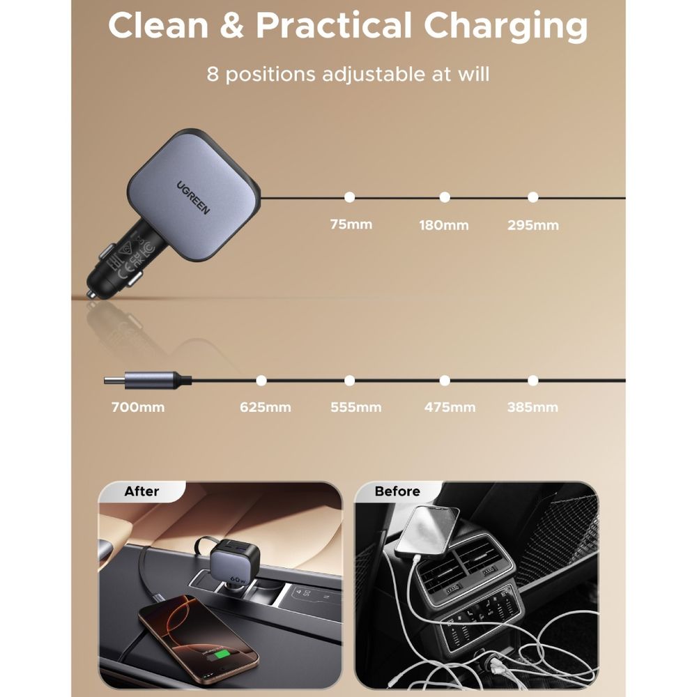 Ugreen 90W 2-Port και Ανασυρόμενο Καλώδιο USB-C Φορτιστής Αυτοκινήτου