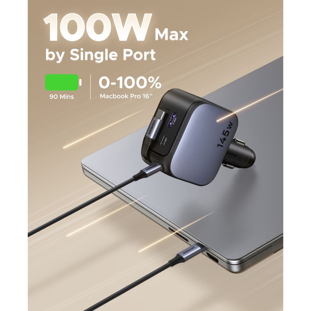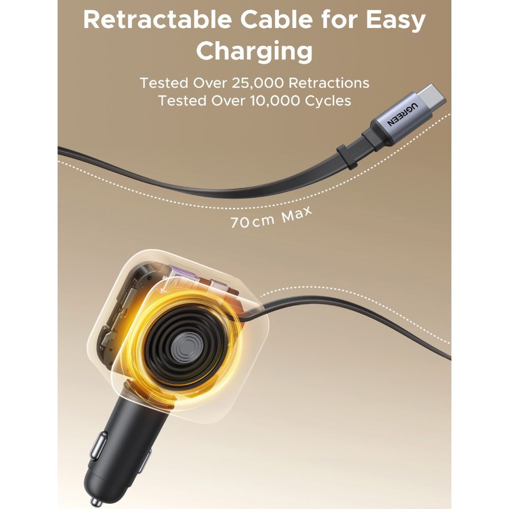 Ugreen 145W 3-Port και Ανασυρόμενο Καλώδιο USB-C Φορτιστής Αυτοκινήτου
