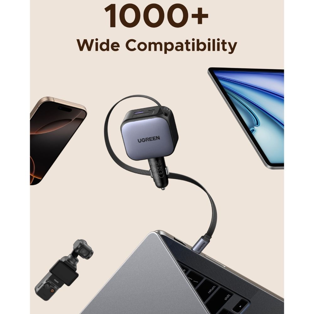 Ο Ugreen 145W φορτιστής αυτοκινήτου σου προσφέρει ισχύ για όλες τις συσκευές σου, από laptops και tablets μέχρι smartphones. Με δύο θύρες και ενσωματωμένο ανασυρόμενο καλώδιο USB-C 60W, φορτίζεις ταυτόχρονα πολλές συσκευές χωρίς μπλεξίματα. Ανθεκτικός και πρακτικός, κρατά την καμπίνα τακτοποιημένη και έτοιμη για κάθε διαδρομή.
