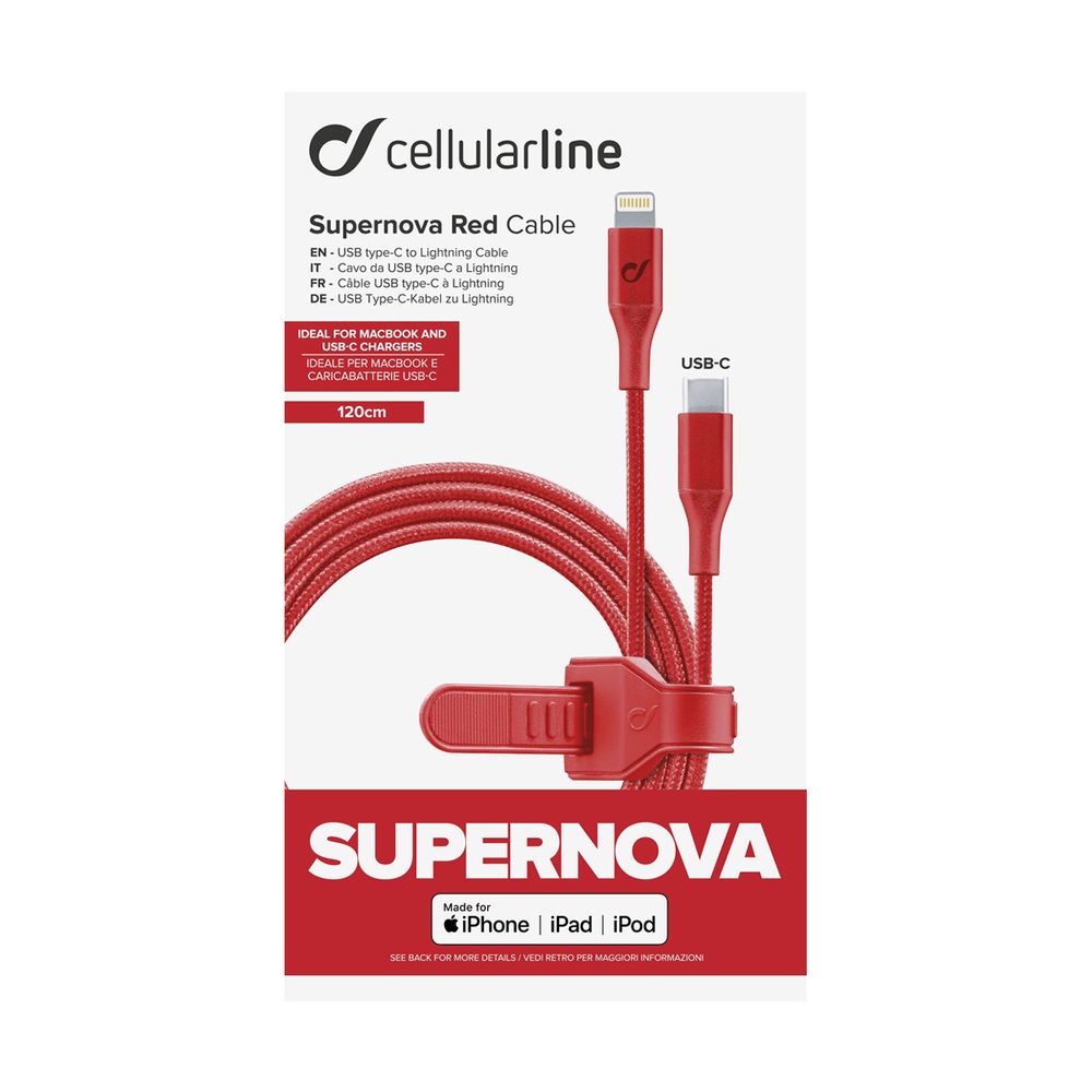 Τo Supernova καλώδιo 120cm της Cellular Line είναι εξοπλισμένο με βύσμα USB-C, το οποίο καταλήγει σε Lightning για την φόρτιση και μεταφορά δεδομένων σε διάφορες συσκευές. Σχεδιασμένο για εύκολη και ασφαλή φόρτιση, το καλώδιο τροφοδοσίας της Cellular Line είναι το απαραίτητο αξεσουάρ για το κινητό σου. Συνδυάζει αντοχή και στυλ, ικανοποιώντας όλες σου τις ανάγκες.
