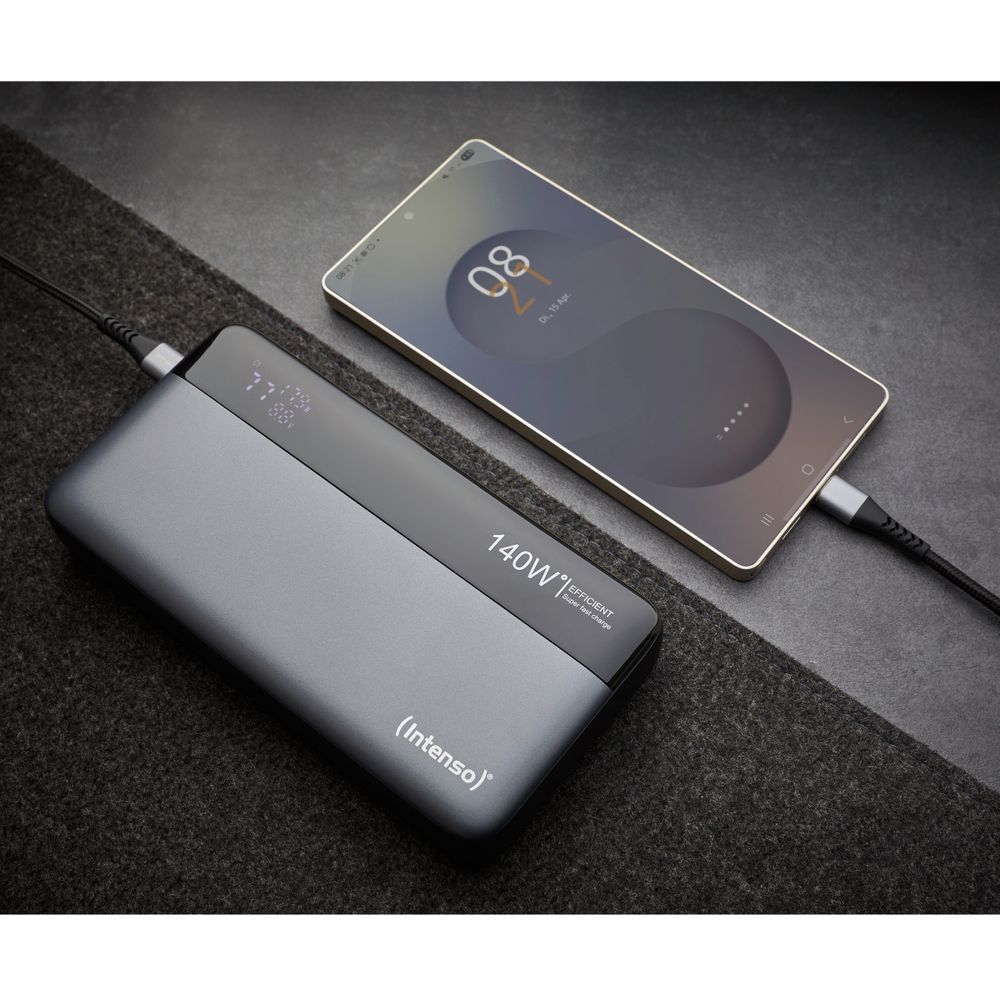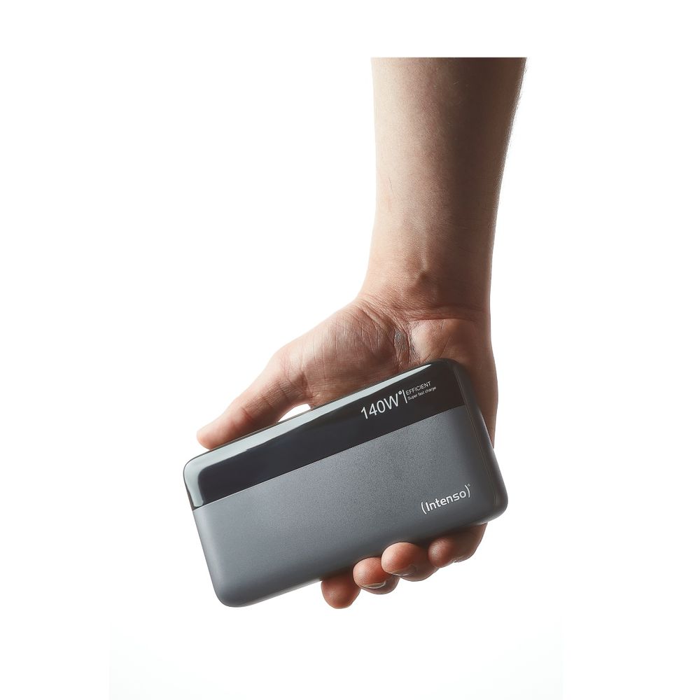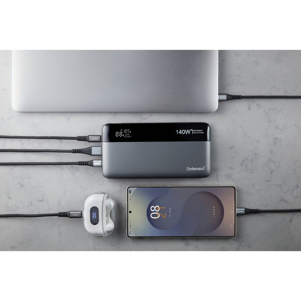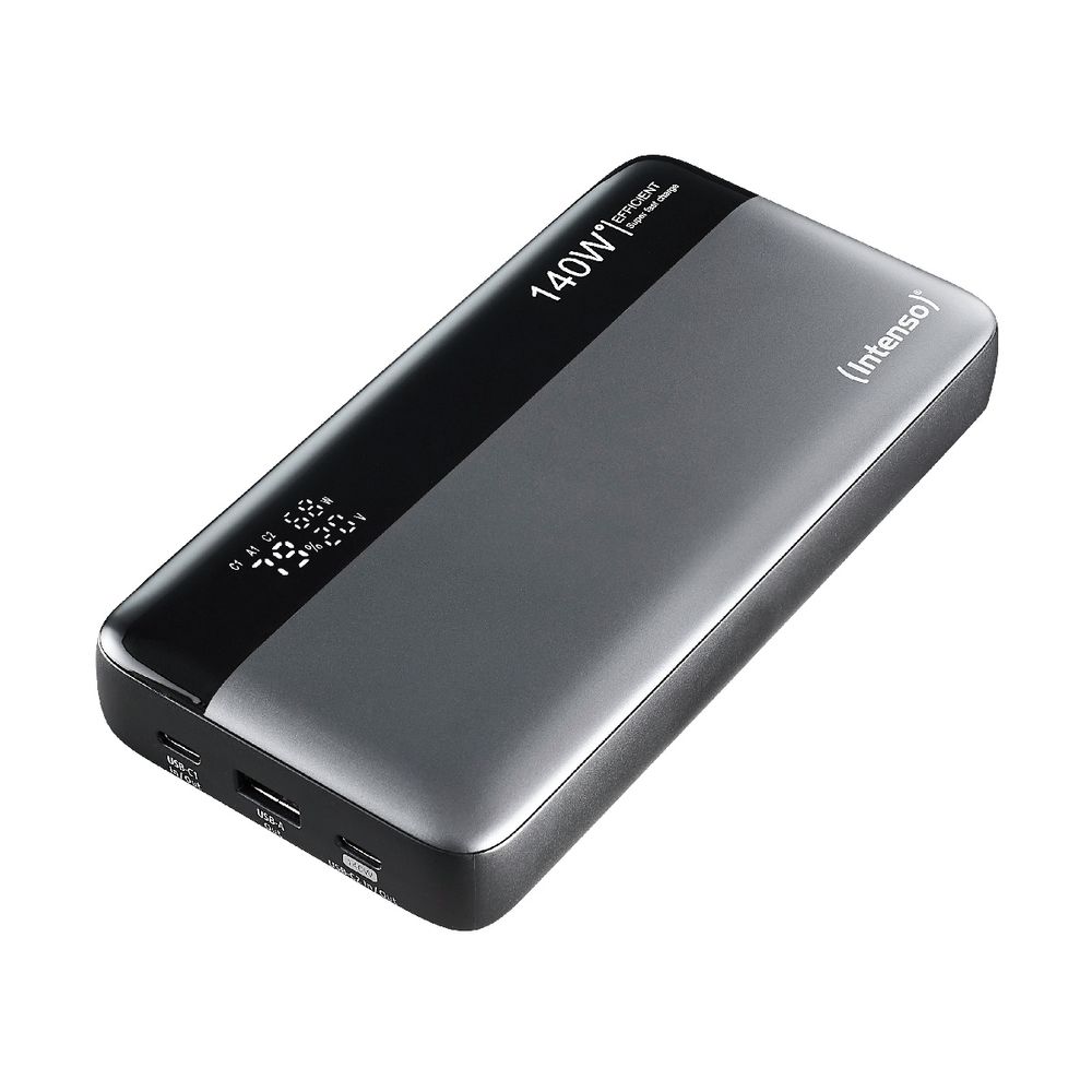 Η ενέργεια σε ακολουθεί παντού με το Powerbank Intenso HE25000. Με 25.000 mAh και ισχύ έως 140 W, φορτίζεις ταυτόχρονα έως 3 συσκευές μέσω 2 USB-C και 1 USB-A. Η έξυπνη ψηφιακή οθόνη δείχνει φόρτιση και ισχύ, ενώ η προστασία υπέρτασης εξασφαλίζει ασφάλεια όπου κι αν βρίσκεσαι.