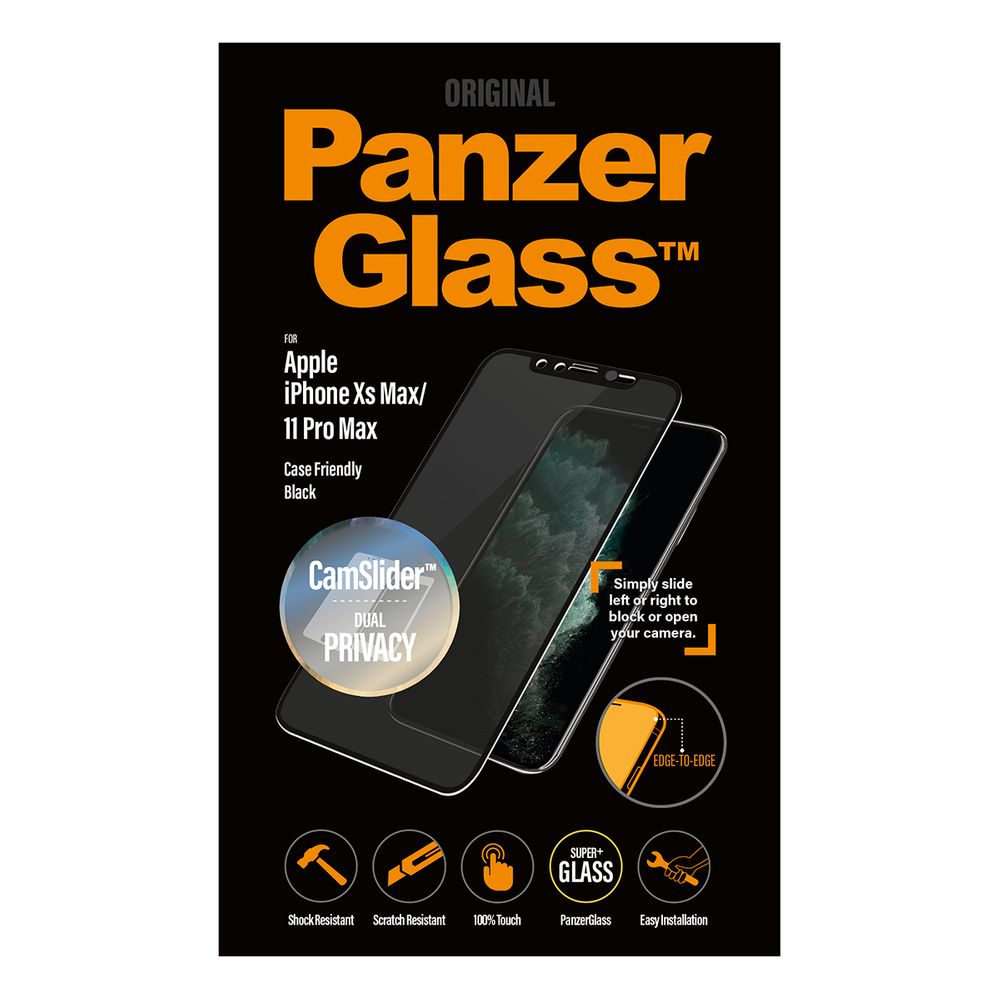 Το PanzerGlass CamSlider Dual Privacy για τα Apple iPhone XS MAX / 11 MAX PRO είναι το πρώτο και μοναδικό παγκοσμίως προστατευτικό γυαλί που προσφέρει τη μέγιστη προστασία για ολόκληρη την εμπρός επιφάνεια της συσκευής όσο και για το περιεχόμενο της οθόνης σου. Ένα ειδικό φίλτρο (privacy filter) καθιστά το περιεχόμενο της οθόνης σχεδόν αόρατο σε όλους, εκτός από τον χρήστη της συσκευής ενώ συγχρόνως σου δίνει τη δυνατότητα κλειδώματος της μπροστινής κάμερας της συσκευής σου.