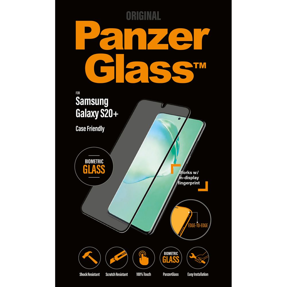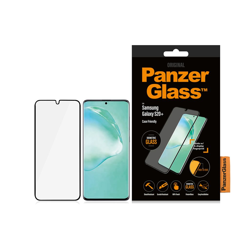 Το προστατευτικό οθόνης PanzerGlass - Biometric για το Samsung Galaxy S20+ είναι συμβατό με τις θήκες και καλύπτει όλη την επιφάνεια της οθόνης. Είναι κατασκευασμένο από βιομετρικό γυαλί και παρέχει το υψηλότερο επίπεδο προστασίας οθόνης με το οποίο λειτουργεί η αναγνώριση δακτυλικού αποτυπώματος στην οθόνη (ultra sonic fingerprint recognition) και η αναγνώριση προσώπου που διαθέτει η συσκευή.