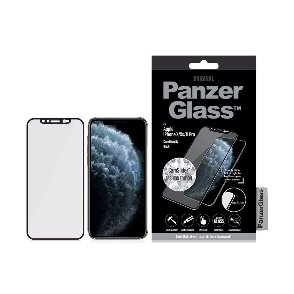 Το PanzerGlass CamSlider Fashion Edition είναι διακοσμημένο με κρύσταλλα Swarovski για τα Apple iPhone X/XS/11 Pro με το πρώτο και μοναδικό προστατευτικό οθόνης Dual Privacy στον κόσμο με ομαλό ενσωματωμένο κάλυμμα κάμερας για κάλυψη όλων των αναγκών απορρήτου σε ένα προϊόν υψηλής απόδοσης. Επίσης, τα PanzerGlass Edge-to-Edge για τα Apple iPhone X/XS/11 Pro προσφέρουν τη μέγιστη προστασία για ολόκληρη την εμπρός επιφάνεια της συσκευής όσο και για το περιεχόμενο της οθόνης.