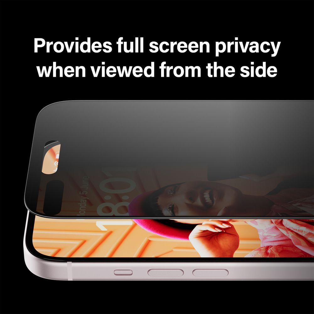Το Ultra-Wide Fit Privacy προστατευτικό γυαλί οθόνης με ειδικά σχεδιασμένο φίλτρο απορρήτου της PanzerGlass, αντιπροσωπεύει την πιο προηγμένη προστασία και το ιδανικότερο φινίρισμα για το iPhone 15 Pro. Με Diamond Glass ισχυρό γυαλί, η Ultra-Wide Fit προσφέρει πρωτοποριακή προστασία για χτυπήματα σε αιχμηρά αντικείμενα και πτώσεις υψηλού επιπέδου ενώ χάρη στο EasyAligner, η τοποθέτηση γίνεται ακόμα πιο εύκολη.
