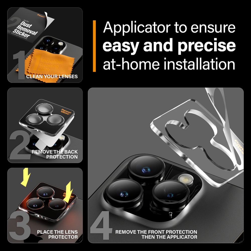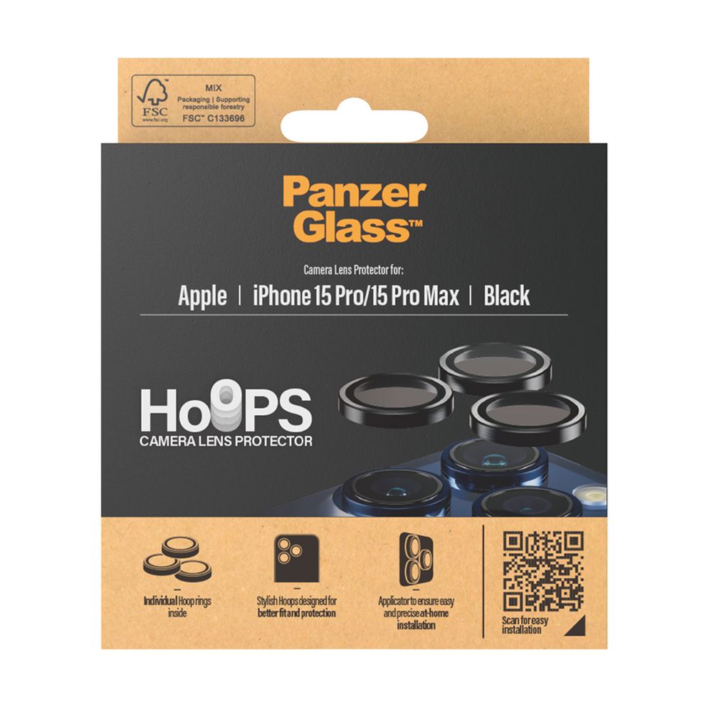 Το προστατευτικό φακού κάμερών PanzerGlass Hoops προστατεύει τους φακούς του κινητού σου από τυχαίες πτώσεις σε σκληρά πέτρινα δάπεδα, χτυπήματα σε αιχμηρές γωνίες και από τα κλειδιά στην τσέπη σου. Οι οπτικοί δακτύλιοι λεπτού προφίλ είναι εξοπλισμένοι με γυαλί ανθεκτικό στις γρατσουνιές και τους κραδασμούς και ένα μαύρο πλαίσιο αλουμινίου που προστατεύουν τους φακούς της κάμερας και δείχνουν υπέροχα. Δεν επηρεάζουν την ποιότητα των φωτογραφιών σου, απλώς σου προσφέρουν λίγη περισσότερη ηρεμία.