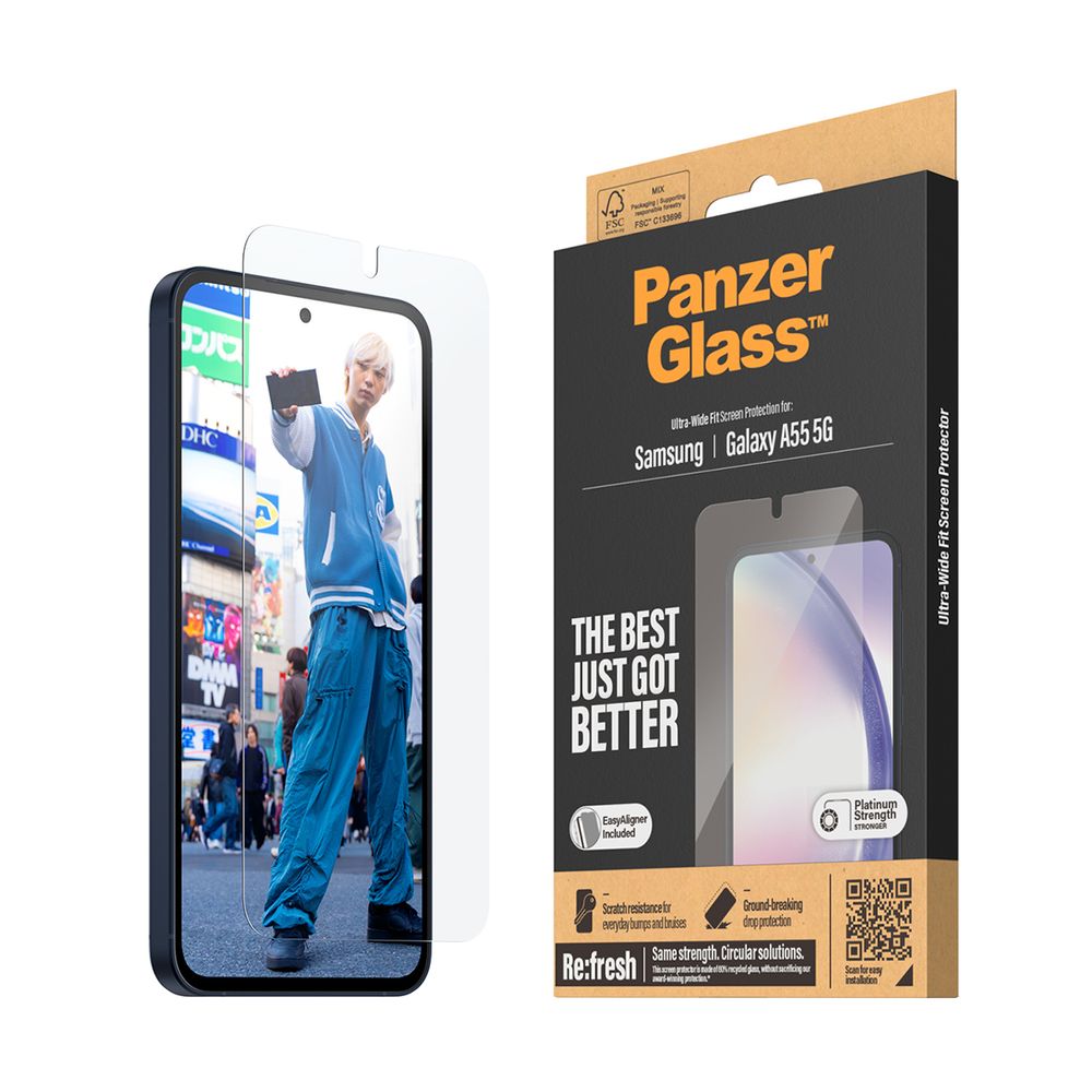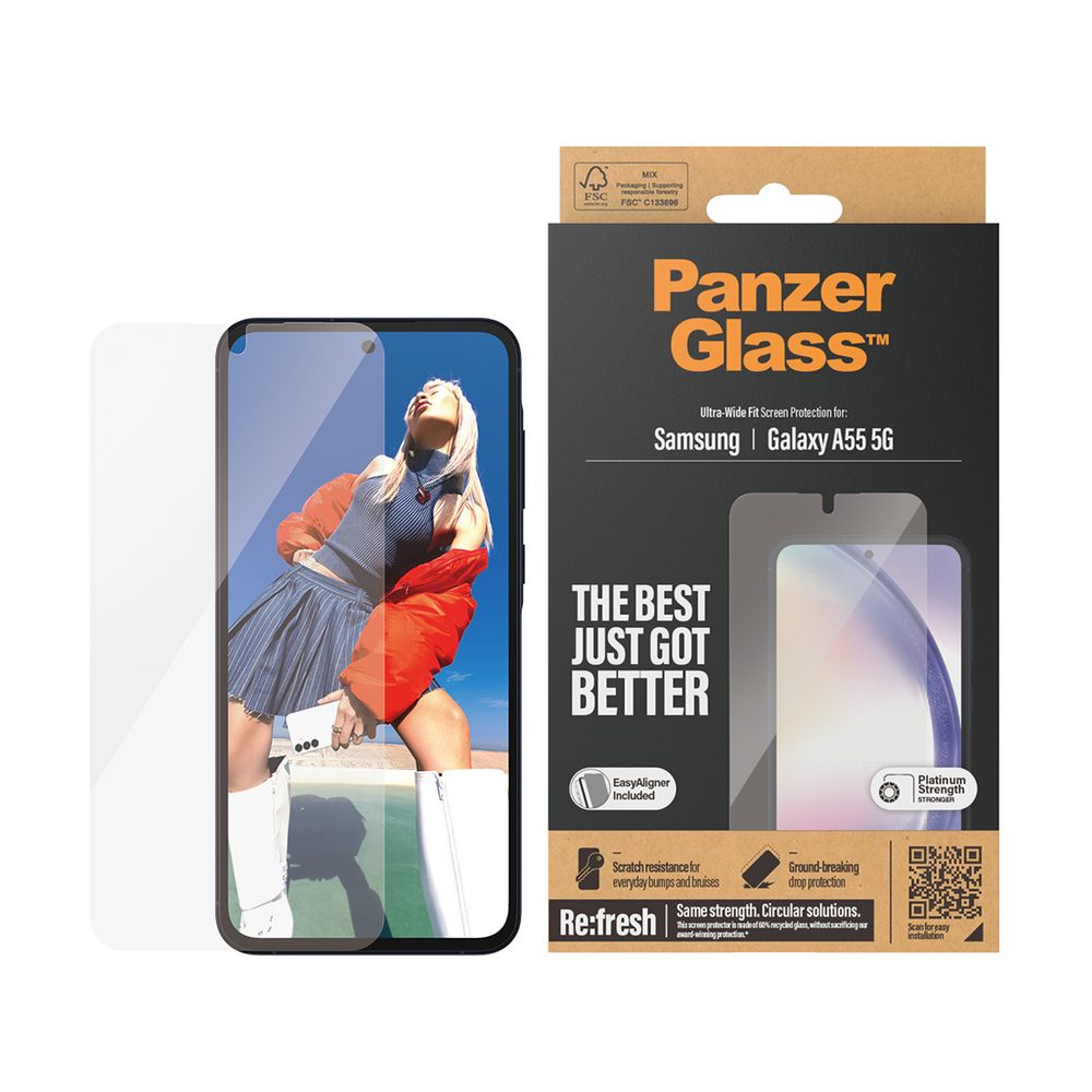 Αυτό το προστατευτικό οθόνης PanzerGlass είναι κατασκευασμένο από 60% ανακυκλωμένο υλικό και προστατεύει την οθόνη σου από χτυπήματα, πτώσεις και άλλους κινδύνους της καθημερινής ζωής. Διαθέτει ακόμη και επίστρωση χωρίς μουτζούρες που μειώνει τα ίχνη δαχτυλικών αποτυπωμάτων και λίπους. Τέλος, εξασφαλίζει 100% συμβατότητα με τη συσκευή ανάγνωσης δακτυλικών αποτυπωμάτων υπερήχων της οθόνης σου, ώστε να μπορείς να είσαι σίγουρος ότι το τηλέφωνό σου ξεκλειδώνει ομαλά κάθε φορά.