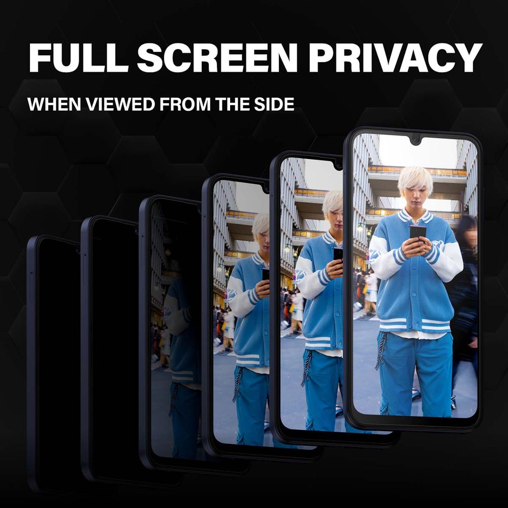 H λύση PanzerGlass Privacy προστατεύει το απόρρητό σου καθώς και τα εμπιστευτικά και ευαίσθητα δεδομένα στο smartphone σου. Η οθόνη είναι ορατή μόνο όταν βλέπεις από μπροστά - όχι από τα δεξιά ή τα αριστερά, προστατεύοντας αποτελεσματικά το περιεχόμενο της οθόνης από τους παρευρισκόμενους και τα περίεργα μάτια.