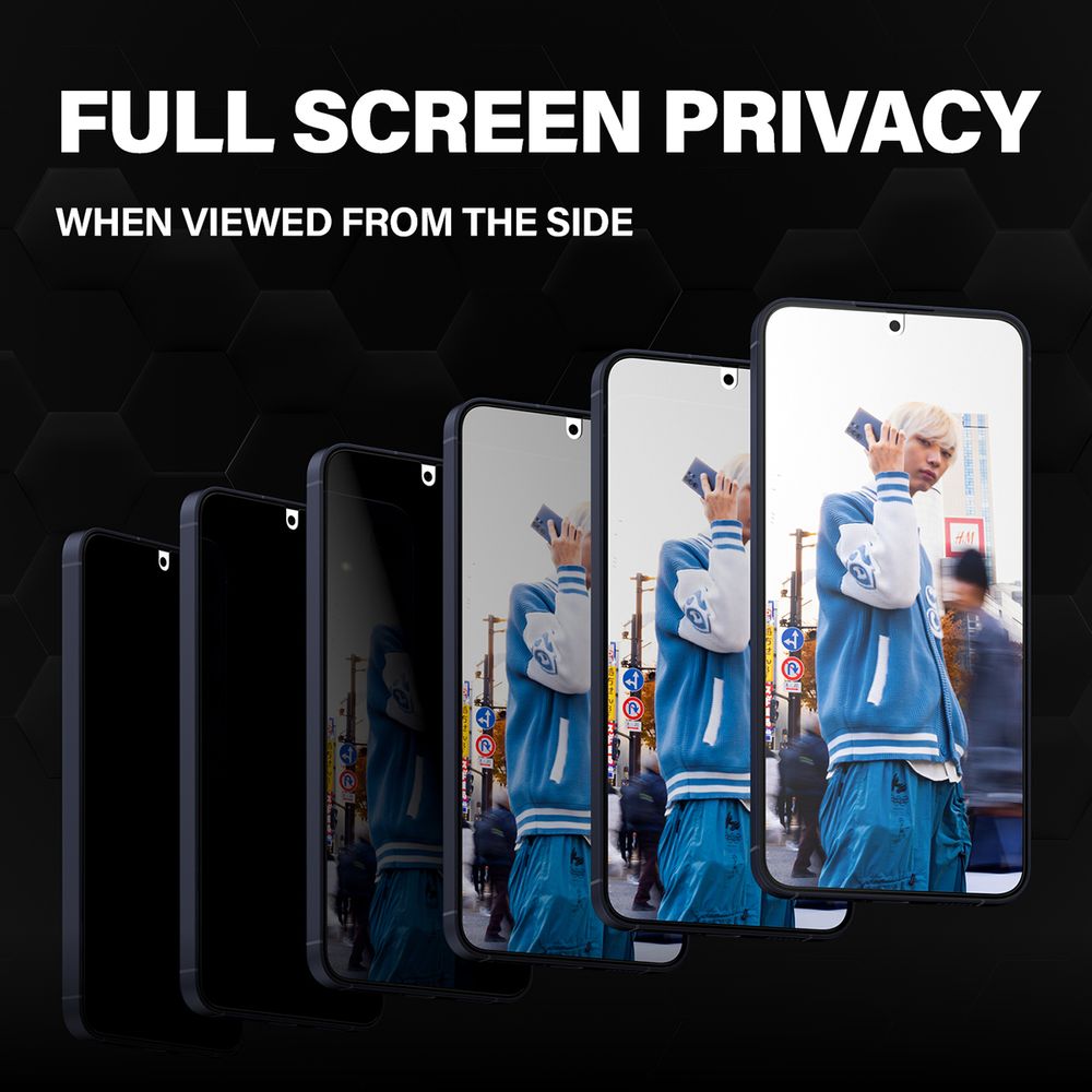 H λύση PanzerGlass S24 Plus Privacy προστατεύει το απόρρητό σου καθώς και τα εμπιστευτικά και ευαίσθητα δεδομένα στο smartphone σου. Η οθόνη είναι ορατή μόνο όταν βλέπεις από μπροστά - όχι από τα δεξιά ή τα αριστερά, προστατεύοντας αποτελεσματικά το περιεχόμενο της οθόνης από τους παρευρισκόμενους και τα περίεργα μάτια.