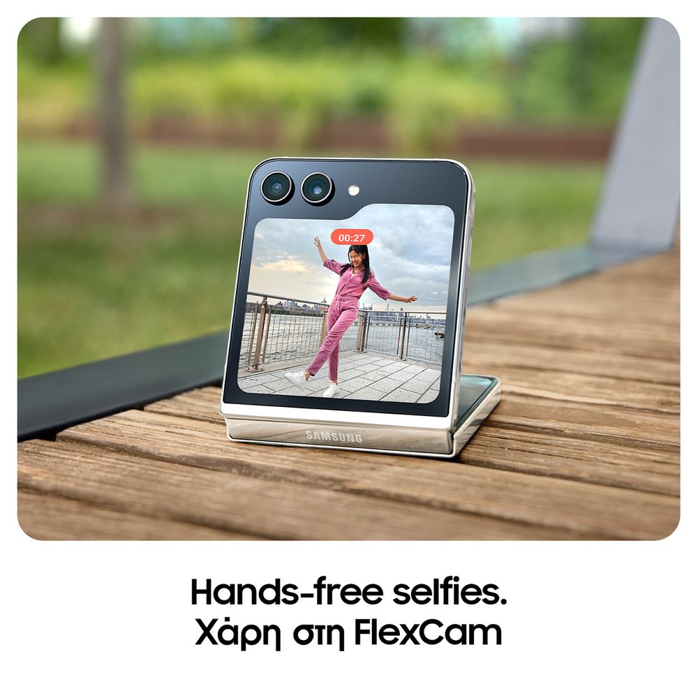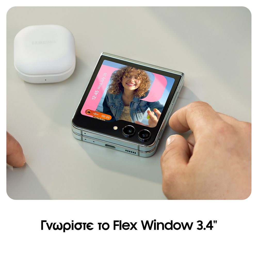 Με κομψό σχεδιασμό και επιδόσεις που καθηλώνουν, το Samsung Galaxy Z Flip5 σε κάνει να ξεχωρίζεις. Χάρη στο Flex Window 3.4” κάνεις τις βασικές εργασίες χωρίς άνοιγμα, ενώ η Flexcam επιτρέπει να τραβάς εντυπωσιακές hands-free selfies, βίντεο και ομαδικές λήψεις από πολλαπλές γωνίες. Βυθίσου στο αγαπημένο σου περιεχόμενο με την οθόνη 6.7” Dynamic AMOLED 2X και επωφελήσου από τον Snapdragon 8 Gen 2 για γρήγορο multitasking.