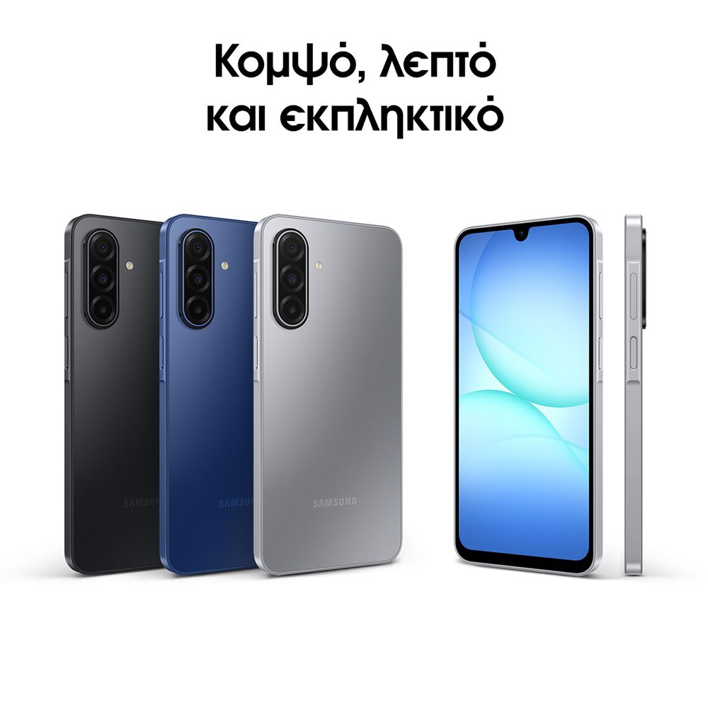 Απόλαυσε τον κόσμο σου με την εντυπωσιακή Super AMOLED οθόνη 6,7’’ και 90Hz του Samsung Galaxy A17 5G. Συνομίλησε φυσικά με το Gemini Live για πληροφορίες σε πραγματικό χρόνο και μοιράσου ό,τι βλέπεις. Τράβηξε εκπληκτικές φωτογραφίες με την τριπλή κάμερα 50MP και selfies 13MP, ακόμα και τη νύχτα χάρη στο OIS. Με ισχυρό οκταπύρηνο επεξεργαστή, αστραπιαίες 5G ταχύτητες, κομψό design και ενημερώσεις OS έως 6 χρόνια, το Galaxy A17 5G είναι έτοιμο για κάθε σου στιγμή.