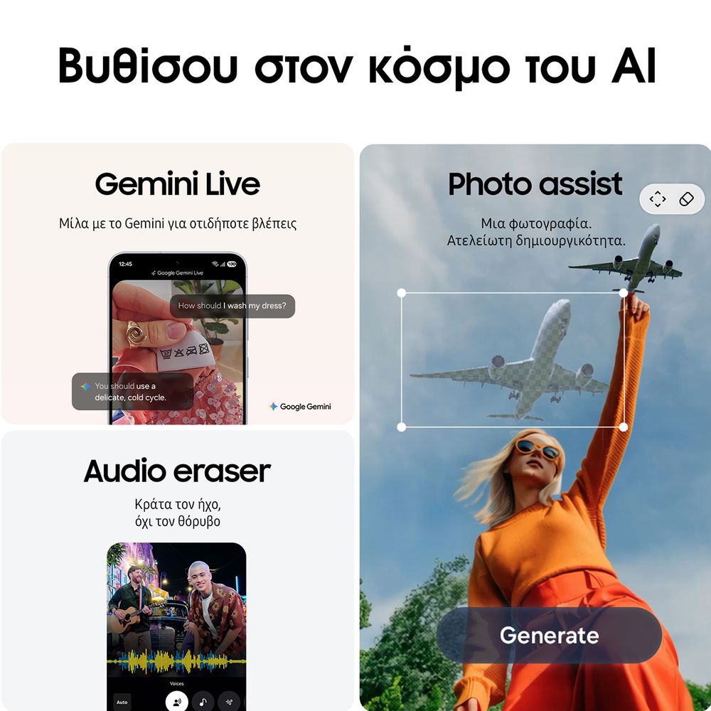 Το Samsung Galaxy S25 FE προσφέρει ισορροπία δύναμης και κομψότητας, με οθόνη 6,7” Dynamic AMOLED 2X FHD+ 120Hz για φωτεινή και καθαρή εικόνα. Ο Exynos 2400 χαρίζει υψηλές επιδόσεις και σταθερό gaming, ενώ η μπαταρία 4.900 mAh με ταχεία φόρτιση 45W και ασύρματη 15W σε στηρίζει όλη μέρα. Το τριπλό σύστημα καμερών 50MP με ProVisual Engine εξασφαλίζει πορτρέτα και selfie γεμάτα λεπτομέρεια, ενώ οι AI λειτουργίες Galaxy AI & Gemini αναβαθμίζουν κάθε εμπειρία με ευφυΐα και δημιουργικότητα.