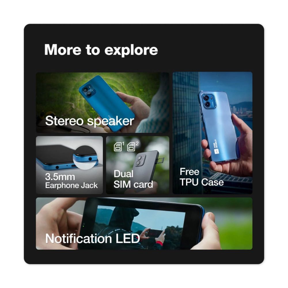 Λειτουργικό σύστημα: Android 13 Chipset: CPU: Unisoc T606, 12nm CPU frequency: Octa(8) Core, up to 1.6GHz Ελληνικό μενού Υποστηρίζει: 2.4G/5G Wi-Fi Bluetooth v5.0 Ενσωματωμένη μπαταρία πολυμερούς ιόντων λιθίου: 4900 mAh Αναστρέψιμη θύρα σύνδεσης: USB Type-C Υποστηρίζει φόρτιση: 10W Υποδοχή ακουστικών 3,5 mm Οθόνη: 6.52 ίντσες / 90Hz Waterdrop Display Τεχνολογία Incell Οθόνη LCD πολλαπλής αφής με τεχνολογία IPS Ανάλυση: 720 * 1600 HD+ RAM: 8 GB μνήμη + 8 GB επέκταση μνήμης Αποθηκευτικός χώρος Flash: 128 GB αποθηκευτικός χώρος τηλεφώνου Κάρτα microSD: Έως 256 GB Κύρια (πίσω) κάμερα: 50MP Μάκρο κάμερα: 2MP Ανάλυση φωτογραφίας: έως 3072 * 4032 pixel Ανάλυση βίντεο: έως 1080P Φλας LED Mπροστινή (selfie) camera: 8MP Υποστηρίζει ξεκλείδωμα με: δακτυλικό αποτύπωμα (5 σετ), Face Unlock Dual SIM (4G/3G ταυτόχρονα) Υποστηρίζει 4G/3G/2G 2 Υποδοχές κάρτας: Nano SIM+ Nano SIM/microSD Υποστηρίζει πολλαπλά συστήματα εντοπισμού θέσης: GPS, GLONASS, Beidou, Galileo Αισθητήρες: Εγγύτητας, φωτός, βαρύτητας, επιτάχυνσης, γεωμαγνητικός Διαστάσεις: 16.4 * 7.6 * 8.5 cm Βάρος: 190g Χρώμα: Μπλε Περιλαμβάνεται: Φορτιστής εναλλασσόμενου ρεύματος, καλώδιο φόρτισης USB-A σε USB Type-C 2.0 (1M), προστατευτική μεμβράνη (προεγκατεστημένη) και προστατευτική θήκη TPU