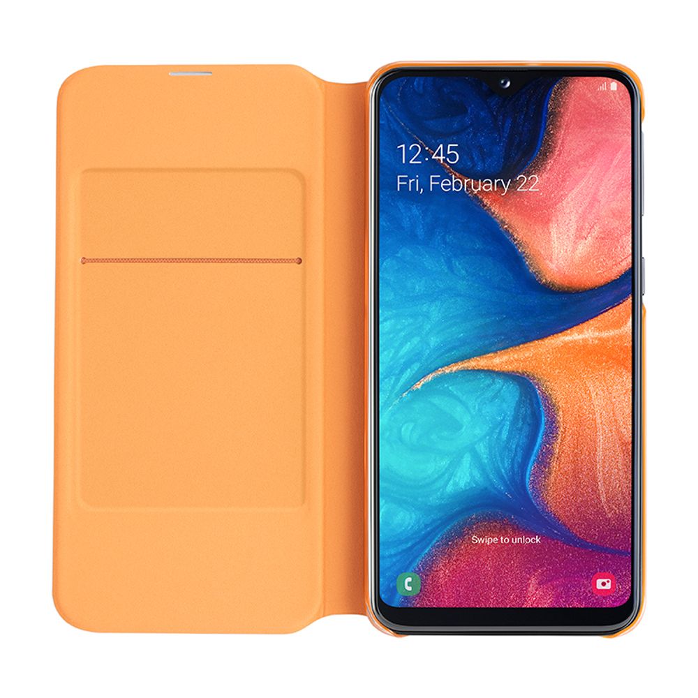 Η θήκη Samsung Flip Wallet Galaxy A20, με το ανθεκτικό σχεδιασμό τύπου κελύφους, παρέχει σφαιρική προστασία. Διαθέτει μια κρυφή τσέπη μέσα για να μεταφέρει άνετα τις προτιμώμενες κάρτες και τα χρήματά σου σε καθημερινή βάση. Χάρη στον διαισθητικό ενσωματωμένο αισθητήρα, ενεργοποιεί και απενεργοποιεί την οθόνη του τηλεφώνου σου για εύκολη χρήση.