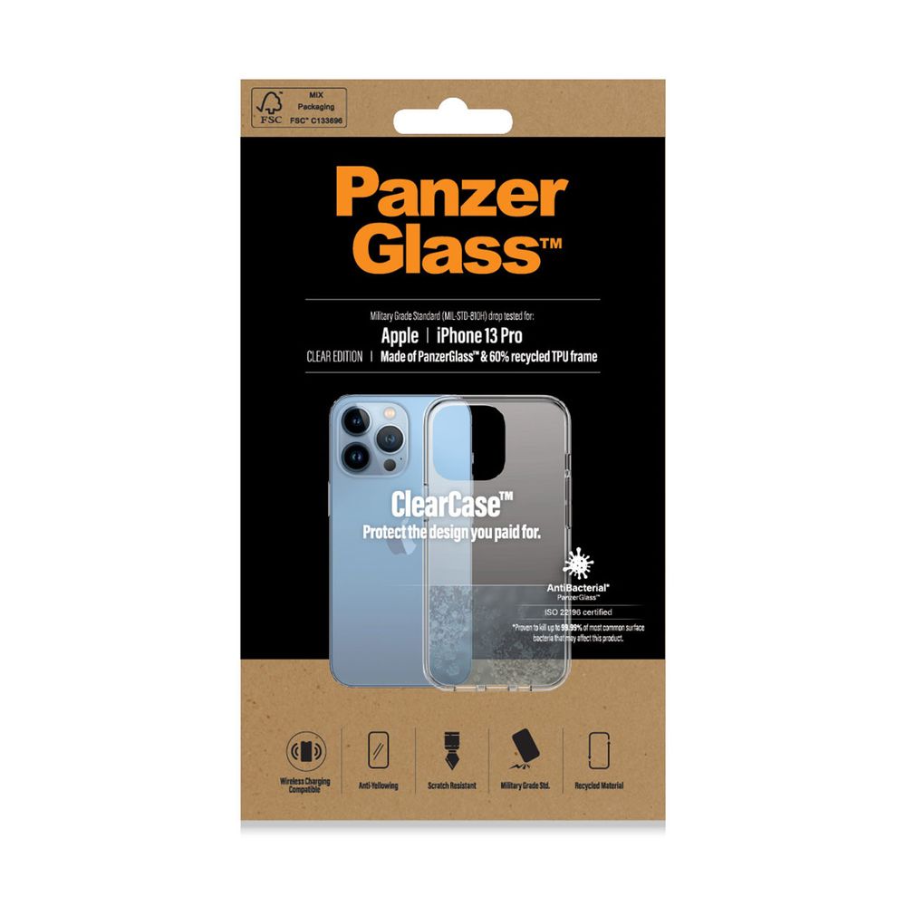 Η ClearCase για τα Apple iPhone 13 Pro συνδυάζει τις πιο καινοτόμες τεχνολογίες, με μια ειδικά εξελιγμένη επίστρωση με αντιβακτηριδιακή επίδραση και το περίφημο εξαιρετικά ισχυρό PanzerGlass βάσει στρατιωτικών προδιαγραφών για μεγαλύτερη αντοχή και προστασία.