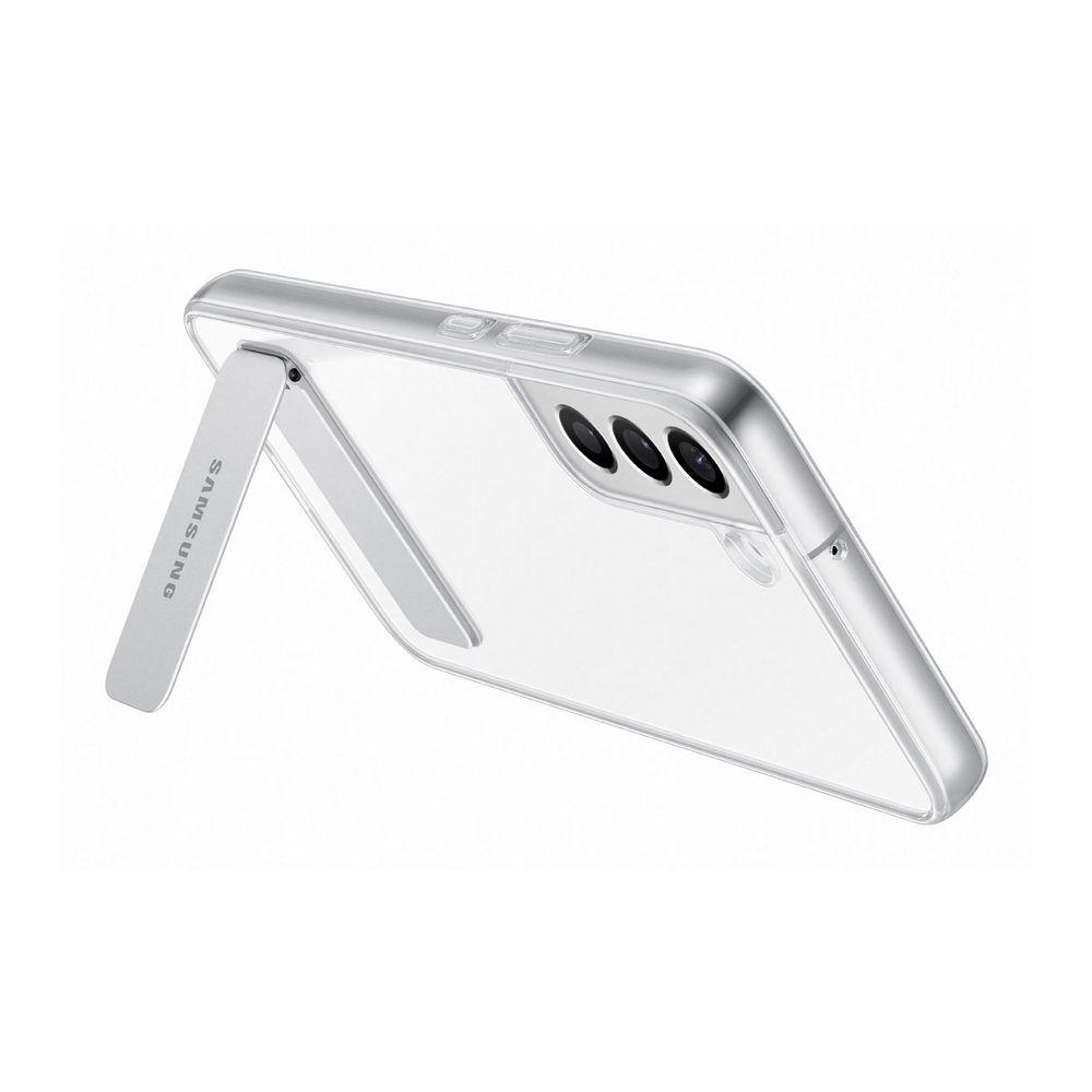 Eξαιρετικά λεπτή και ταυτόχρονα ανθεκτική, η αυθεντική θήκη Samsung Clear Standing Cover είναι εδώ για να χαρίσει προστασία στο Samsung Galaxy S22+ και να σου προσφέρει σιγουριά και άνεση! Είναι διάφανη για να αναδείξεις την εμφάνιση και το χρώμα της συσκευής. Εφαρμόζει τέλεια χωρίς να προσθέτει όγκο στη συσκευή και διαθέτει αποσπώμενο στήριγμα για άνετη παρακολούθηση video και multimedia περιεχομένου.