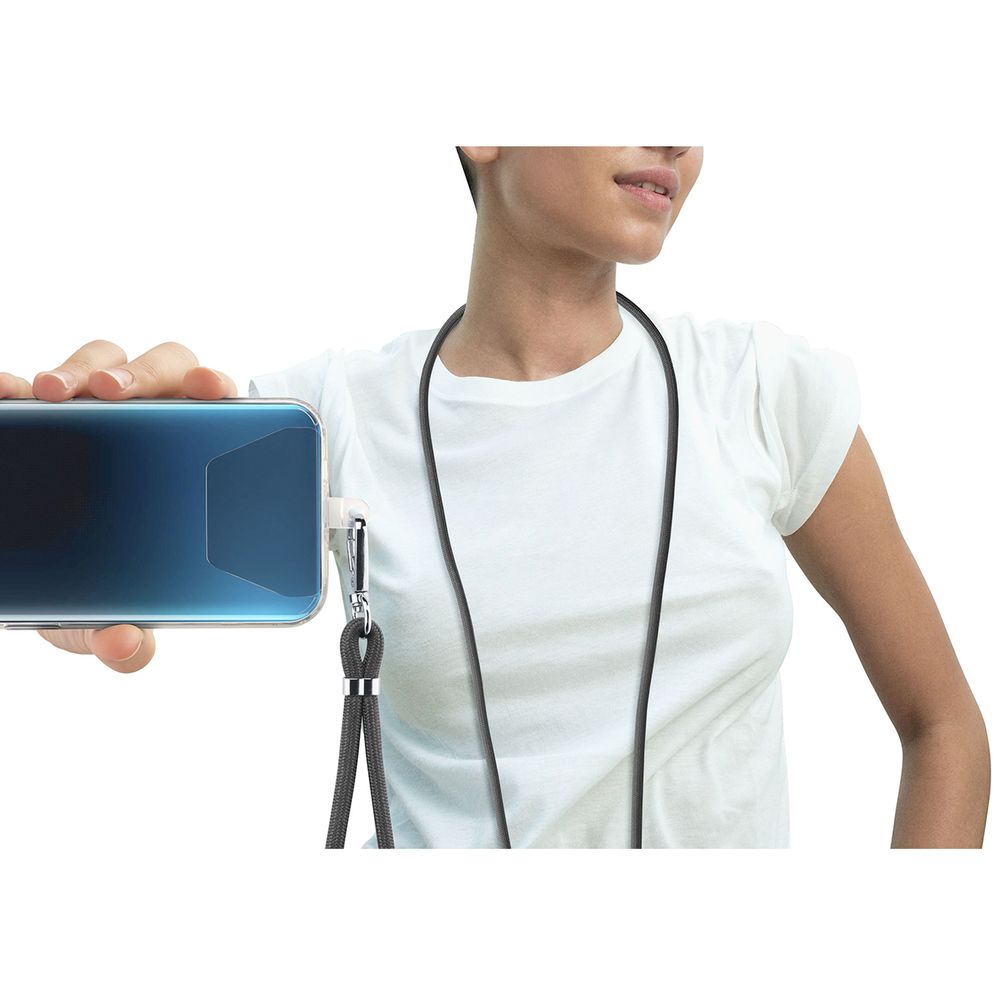 Το UNIVERSAL LACE σου επιτρέπει να μεταφέρεις το κινητό σου στο λαιμό ή τον ώμο σου, έχοντας το πάντοτε κοντά στα χέρια σου. Περιλαμβάνει ένα υφασμάτινο κορδόνι και ένα πλαστικό στήριγμα το οποίο τοποθετείται ανάμεσα στη θήκη και το smartphone. Το αυτοκόλλητο καπάκι εφαρμόζεται είτε στη θήκη είτε στο πίσω μέρος της συσκευής , όπου χάρη στην εποξειδική του κόλλα μπορεί να αφαιρεθεί και να επαναχρησιμοποιηθεί πολλές φορές.