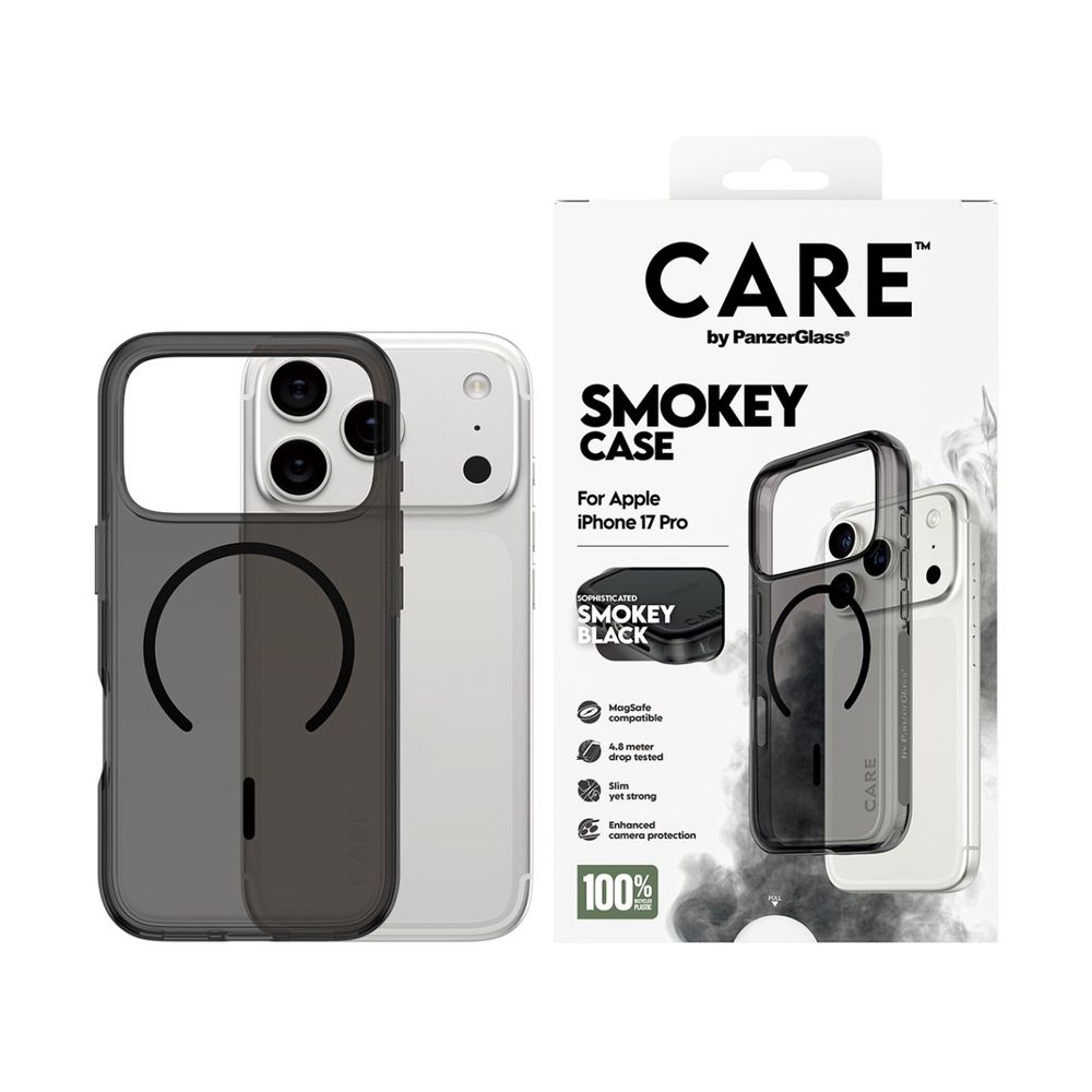 Αναβάθμισε το στυλ και την προστασία σου με τη θήκη Smokey από την CARE by PanzerGlass για iPhone 17 Pro. Με cool φινίρισμα και κατασκευή από ανακυκλωμένο πλαστικό, αντέχει πτώσεις έως 4,8 μέτρα, προσφέρει ενισχυμένη προστασία κάμερας και υποστηρίζει ασύρματη φόρτιση και MagSafe. Είναι κομψή, λεπτή και έτοιμη να σε ακολουθήσει σε κάθε στιγμή, από το πρωινό τρέξιμο μέχρι το ηλιοβασίλεμα.