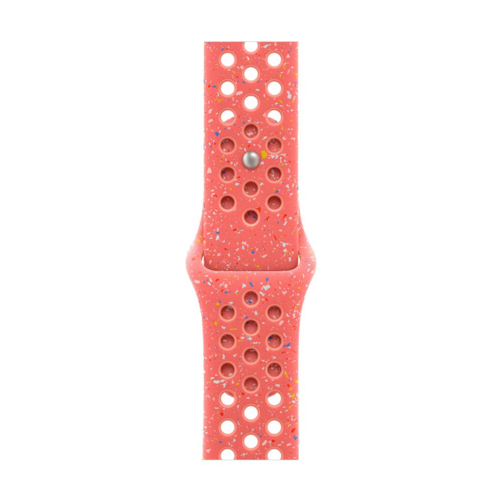 Κατασκευασμένο με συμπιεσμένες διατρήσεις για καλύτερη διαπνοή, το Nike Sport Band είναι ανθεκτικό και ισχυρό, αλλά εκπληκτικά απαλό. Διαθέτει πολύχρωμα κομμάτια που δημιουργούν ένα τυχαίο μοτίβο, κάνοντας κάθε λουράκι μοναδικό. Το λείο, πυκνό υλικό αγκαλιάζει κομψά τον καρπό σου και προσφέρει άνεση δίπλα στο δέρμα σου. Ένα κούμπωμα αλουμινίου με καρφίτσα και κρυφή θηλιά δίνει στο κούμπωμα ένα μοντέρνο ματ φινίρισμα.