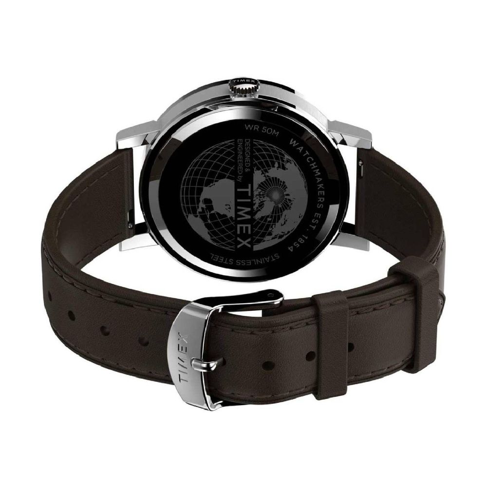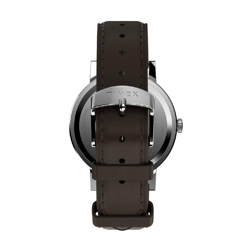 Ρολόι Timex Trend Midtown με πλαίσιο κατασκευασμένο από ανοξείδωτο ατσάλι, διαμέτρου 38 mm και δερμάτινο λουράκι. Επιπλέον, διαθέτει κρύσταλλο κατασκευασμένο από ορυκτό ειδικής σκλήρυνσης.