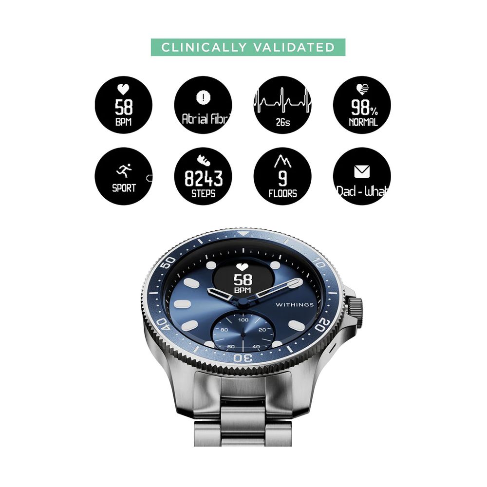 Το ScanWatch με οθόνη 1.69” είναι το υβριδικό έξυπνο ρολόι που σαρώνει συνεχώς ζωτικές παραμέτρους για τον εντοπισμό παθήσεων της καρδιακής υγείας και τη βελτίωση της συνολικής φυσικής κατάστασης σου. Το ScanWatch διαθέτει ΗΚΓ ιατρικής ποιότητας, οξύμετρο για μετρήσεις SpO2 και εξαιρετική διάρκεια ζωής μπαταρίας έως και 30 ημέρες. Περιλαμβάνει περιστρεφόμενο καντράν, μεταλλικό λουράκι και έχει αντοχή στο νερό 10 ΑΤΜ.