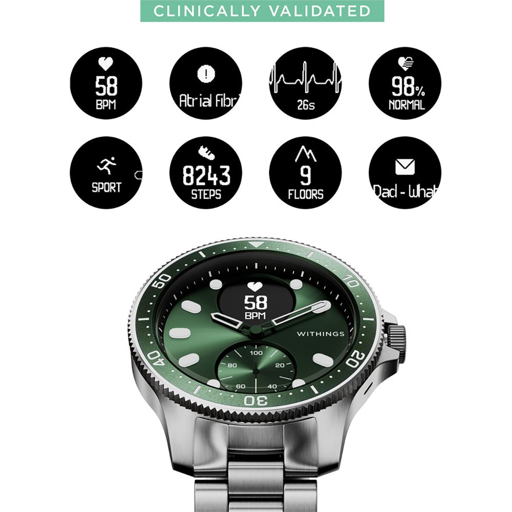 Το ScanWatch με οθόνη 1.69” είναι το υβριδικό έξυπνο ρολόι που σαρώνει συνεχώς ζωτικές παραμέτρους για τον εντοπισμό παθήσεων της καρδιακής υγείας και τη βελτίωση της συνολικής φυσικής κατάστασης σου. Το ScanWatch διαθέτει ΗΚΓ ιατρικής ποιότητας, οξύμετρο για μετρήσεις SpO2 και εξαιρετική διάρκεια ζωής μπαταρίας έως και 30 ημέρες. Περιλαμβάνει περιστρεφόμενο καντράν, μεταλλικό λουράκι και έχει αντοχή στο νερό 10 ΑΤΜ.