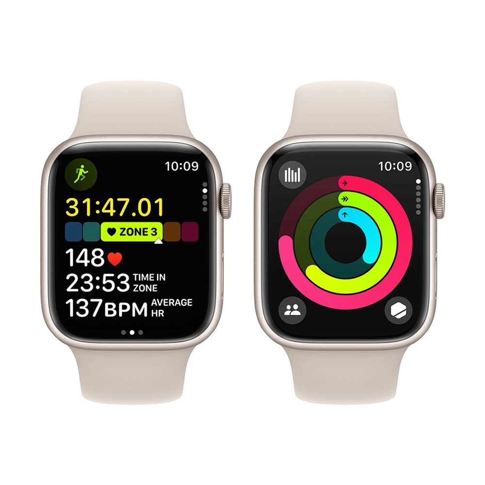 Apple Watch Series 9 GPS 45mm Starlight Aluminum Case with Starlight Sport Band S/M SmartWatch