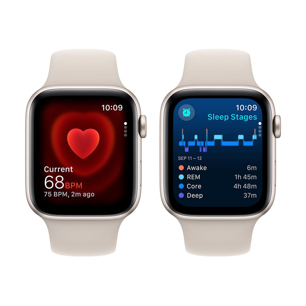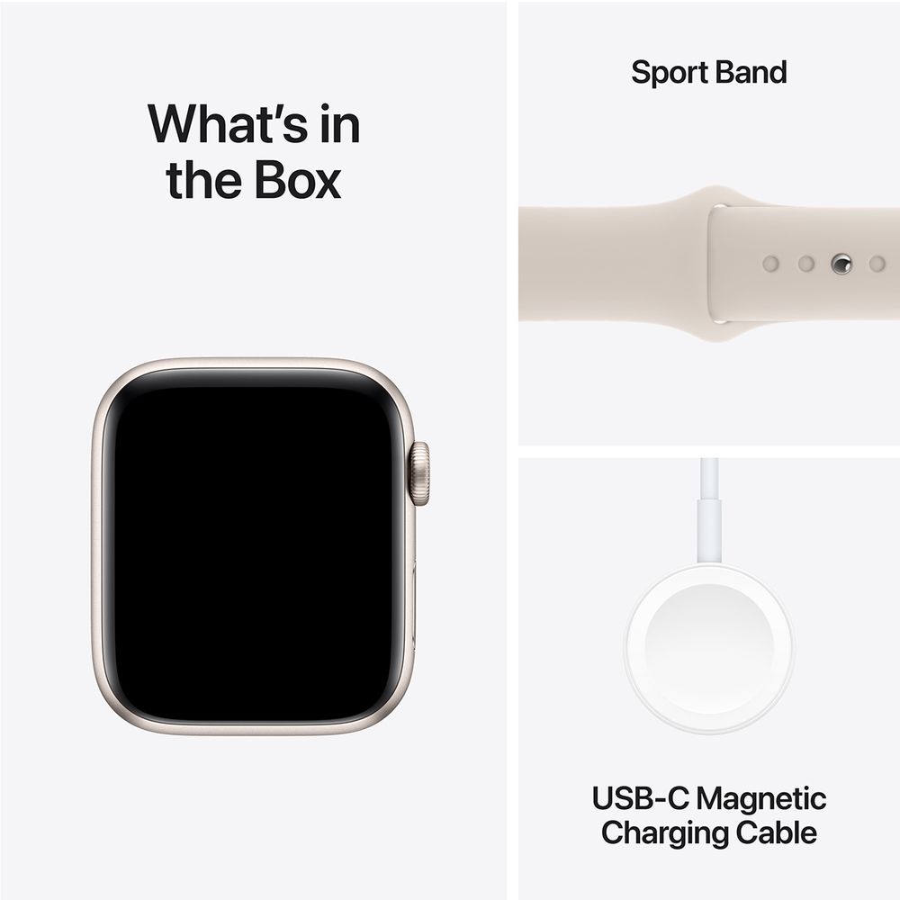 Apple Watch SE 2023 GPS 44mm Starlight Aluminum Case with Starlight Sport Band S/M SmartWatch