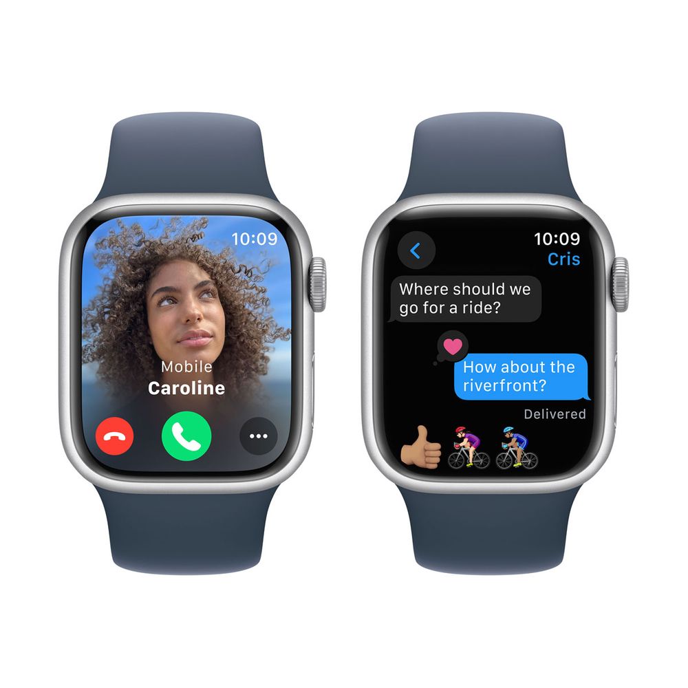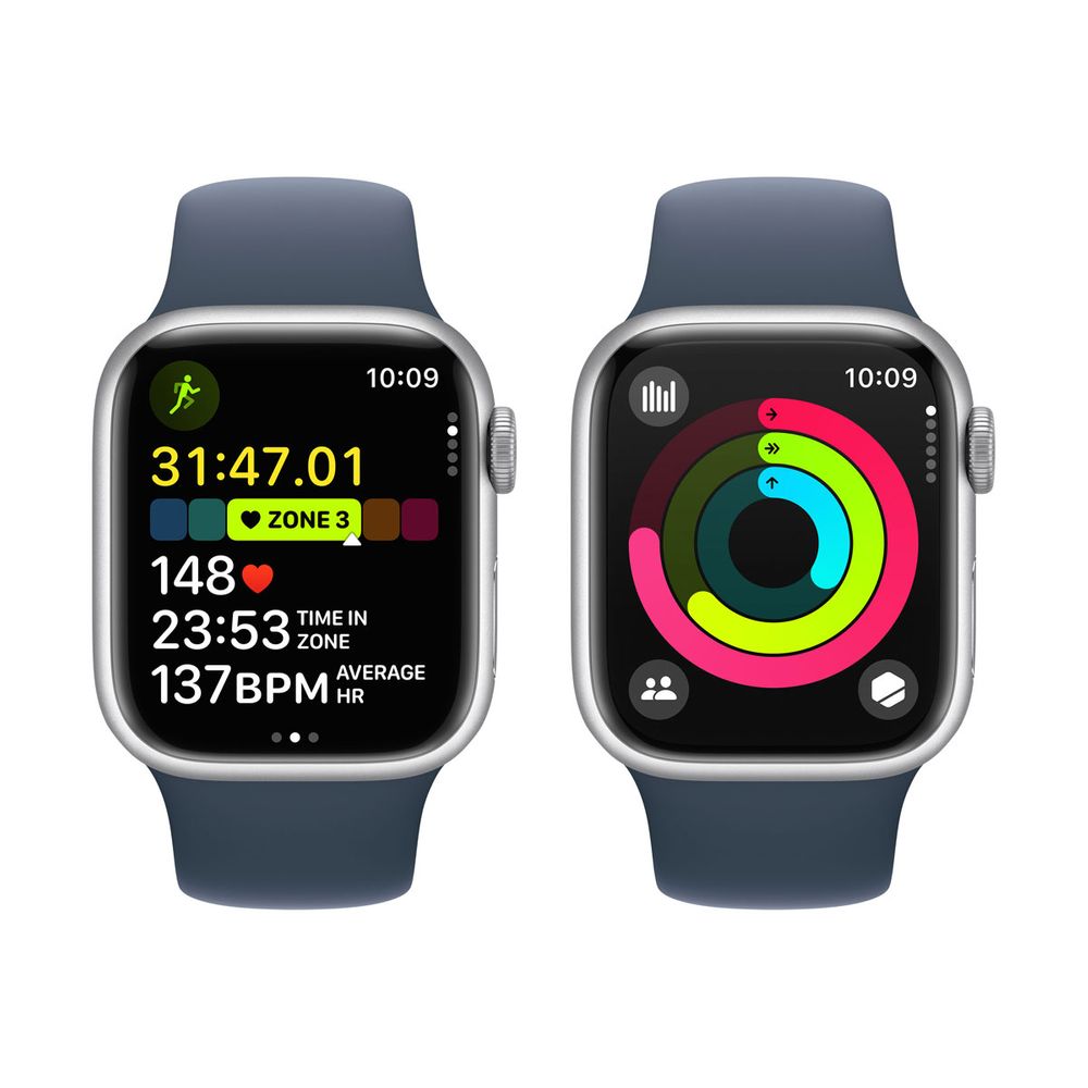 Apple Watch Series 9 GPS 41mm Silver Aluminum Case with Storm Blue Sport Band M/L SmartWatch